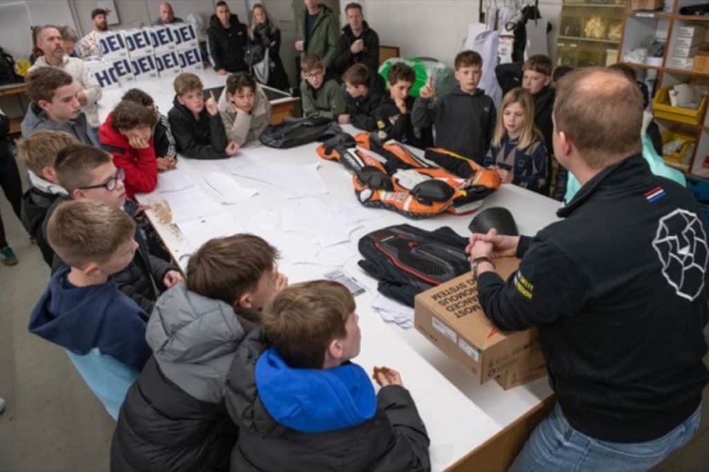 Op zaterdag 21 maart werden de jonge coureurs van de Molenaar NSF100 Cup ontvangen bij Damen Motorkleding in Breda. Carla Molenaar heette de rijders welkom en gaf het startsein voor een leerzame middag. Algemeen directeur Maarten Alewijn lichtte toe hoe een raceoverall op maat wordt vervaardigd en toonde als voorbeeld het pak van meervoudig WorldSupersport 300-kampioen Jeffrey Buis. Ook kwamen moderne veiligheidssystemen, zoals de geïntegreerde airbagtechniek, aan bod.