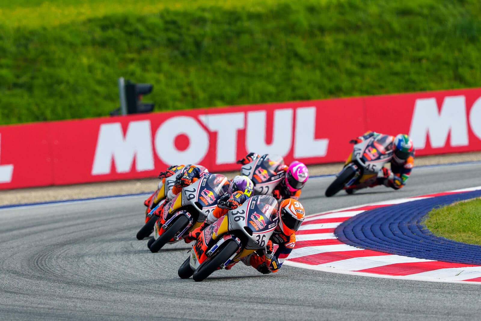 ‘Als je het afzet tegen de top van het veld, moet eigenlijk alles beter: het aanremmen van de bocht, het ingaan van de bocht, de snelheid gedurende de bocht en het uitkomen van de bocht. Ik denk dat het grootste punt waarop ik kan verbeteren is om nog meer met de achterrem te gaan werken, vooral in de rechterbochten. De bocht in en dan de achterrem nog net een beetje intrappen, zodat je de motor nog net iets beter kunt sturen en weer eerder op het gas kunt. Dat heeft de coach van de Red Bull Rookies Cup ook aangegeven. En ik denk ook gewoon iets harder de hoek induiken.’