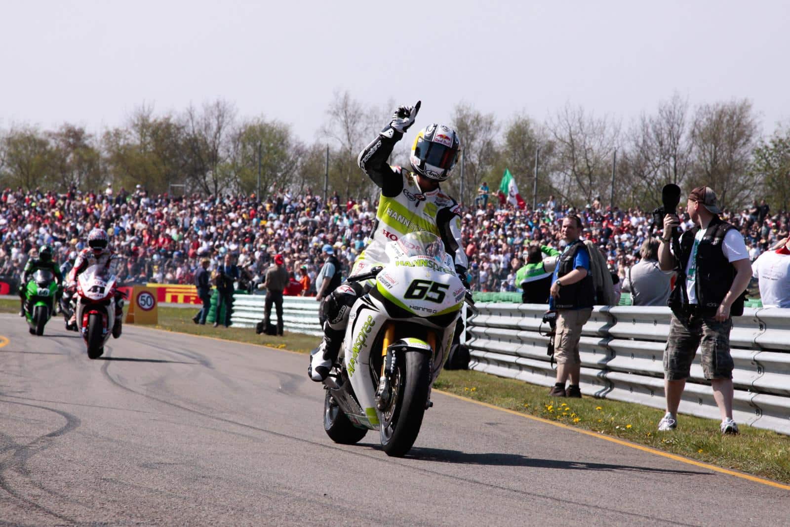 ‘Er zijn er heel veel, maar ik weet er nog één heel goed: Misano in zijn eerste Superbike-jaar (2009). We reden al jaren met WP-vering, maar dat merk was verkocht aan KTM, en de support vanuit Nederland werd flink teruggeschroefd. Eén ding is heel belangrijk in de racerij: ontwikkeling. Helemaal voor ons als team, met een motor die nog nét dat beetje extra nodig had. Op aandringen van Jonathan zijn we toen halverwege het seizoen overgestapt naar Öhlins. We hadden maar één keer de kans om te testen. Het team had enorm veel werk verricht – eigenlijk ging het allemaal véél te snel. Maar Jonathan had zich iets in zijn hoofd gezet: “Ik ga deze race winnen om te laten zien dat dit de juiste stap is.” En hij won. Zijn allereerste zege in de World Superbike. Dat was wel echt een heel speciaal moment. En hij heeft natuurlijk heel vaak met ons gewonnen in Assen. Hij heeft alles in zijn carrière volledig zelf verdiend, en het is prachtig dat wij daar een kleine bijdrage aan hebben mogen leveren.’
