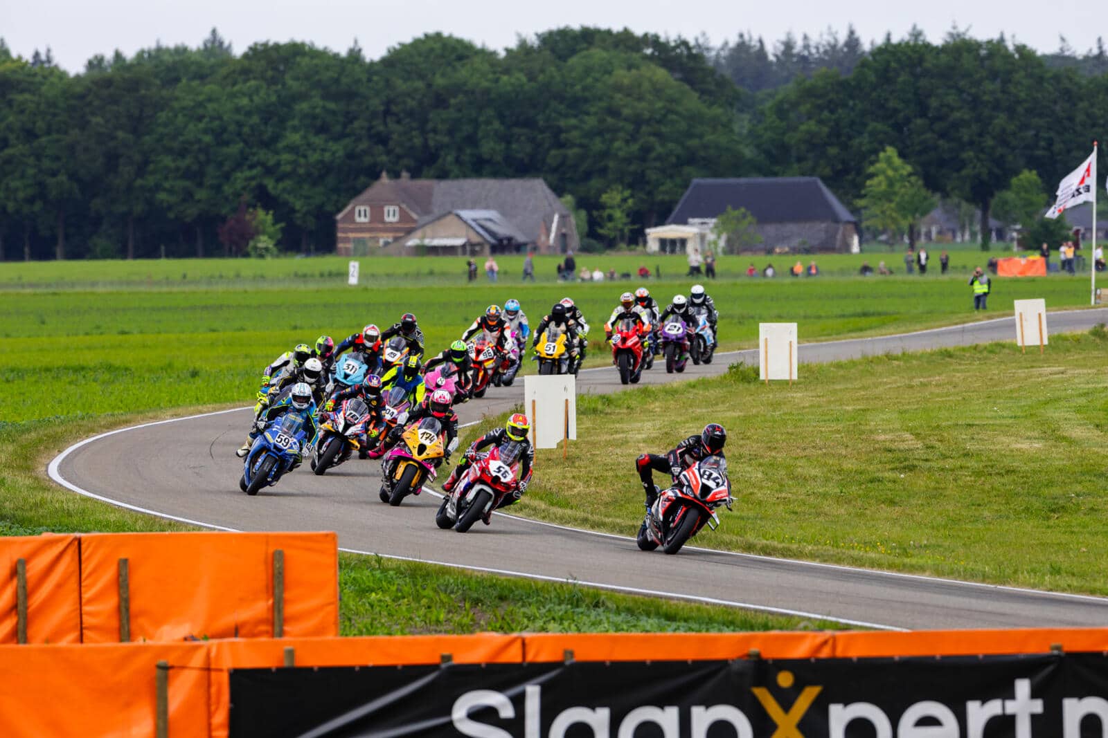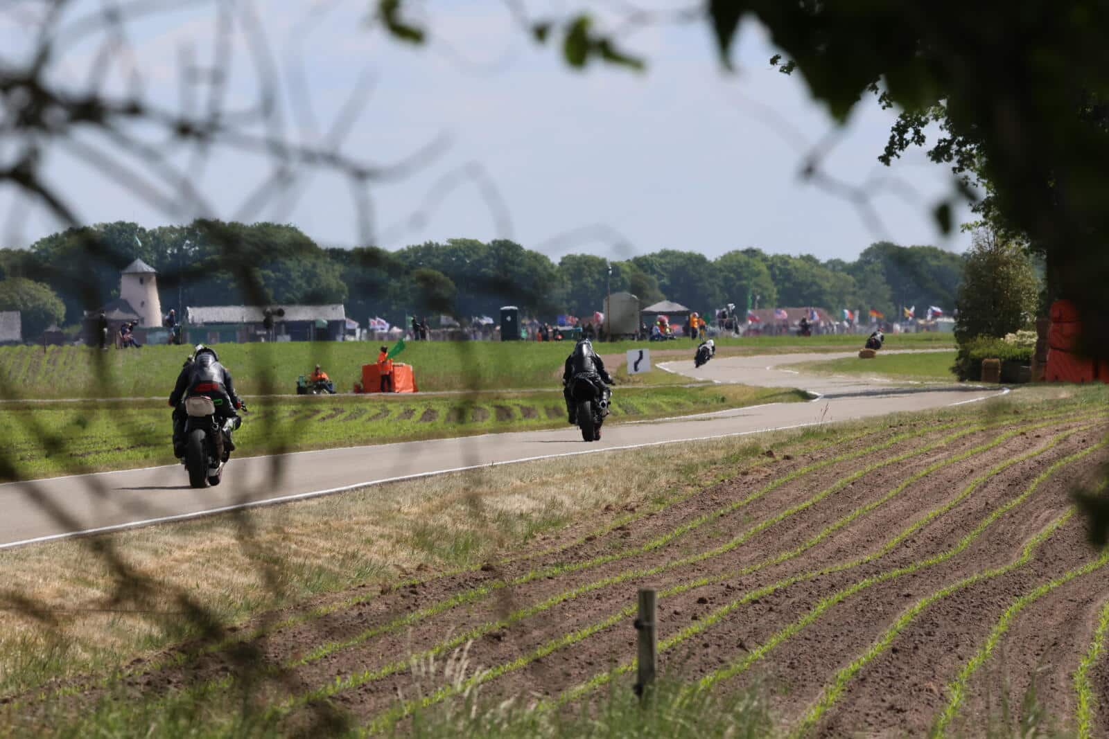 Wat voor toeschouwers in Hengelo (GLD) prettig is: er is zo’n vol wedstrijdprogramma dat er bijna continu actie op de baan is. En mocht je daar even genoeg van hebben, dan is er in de paddock ook van alles te zien en te beleven. Het mooie is dat alle teams hier nog ouderwets vanuit tenten werken. De meesten vinden het geen probleem als je even binnenloopt of als een van je kinderen kort op de motor wil zitten. Lekker laagdrempelig. Vriendengroepen staan er gezellig met elkaar een biertje te drinken, maar jong en oud loopt gemoedelijk door elkaar heen. Ook de podiumceremonie is gewoon in de paddock en dat vonden de kinderen geweldig. Om de beurt moest ik ze op mijn schouders nemen, omdat ze wilden zien hoe de huldiging in zijn werk ging. Daarnaast zijn we nog even naar de tribune bij de Veldermansbocht (de eerste bocht) gelopen. Als ik alleen was geweest, had ik zeker een volledige ronde langs de baan gelopen. Ben je goed ter been, dan is dat absoluut een aanrader. Achter op het circuit liggen namelijk een aantal spectaculaire aanrempunten. Ook zijn er twee chicanes aangelegd, met taluds (graswallen) voor het publiek – iets waar HAMOVE duidelijk over heeft nagedacht. Een tip: loop je rondje tegen de rijrichting in, zodat je de motoren op je af ziet komen in plaats van dat je steeds achterom moet kijken. En hoewel het evenement historie ademt, gaat het ook met zijn tijd mee. Sinds 2025 is er een livestream met beelden van uitstekende kwaliteit. Met grote schermen langs de baan kan het publiek de actie volgen wanneer de rijders buiten het zicht zijn, aangevuld met enthousiast commentaar van de speakers. Halverwege de middag hadden de kinderen het logischerwijs wel gezien en zijn we huiswaarts gegaan. Weken later hadden ze het er nog over en werden de races fanatiek nagespeeld in de tuin.
