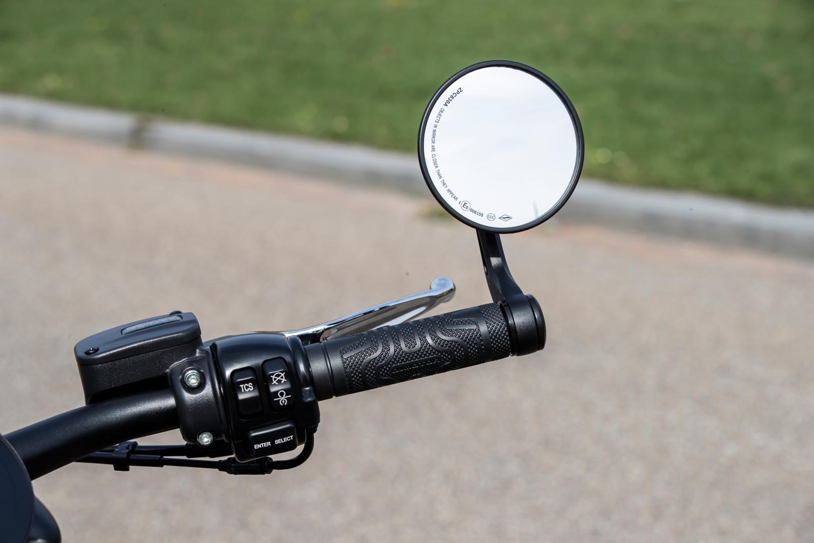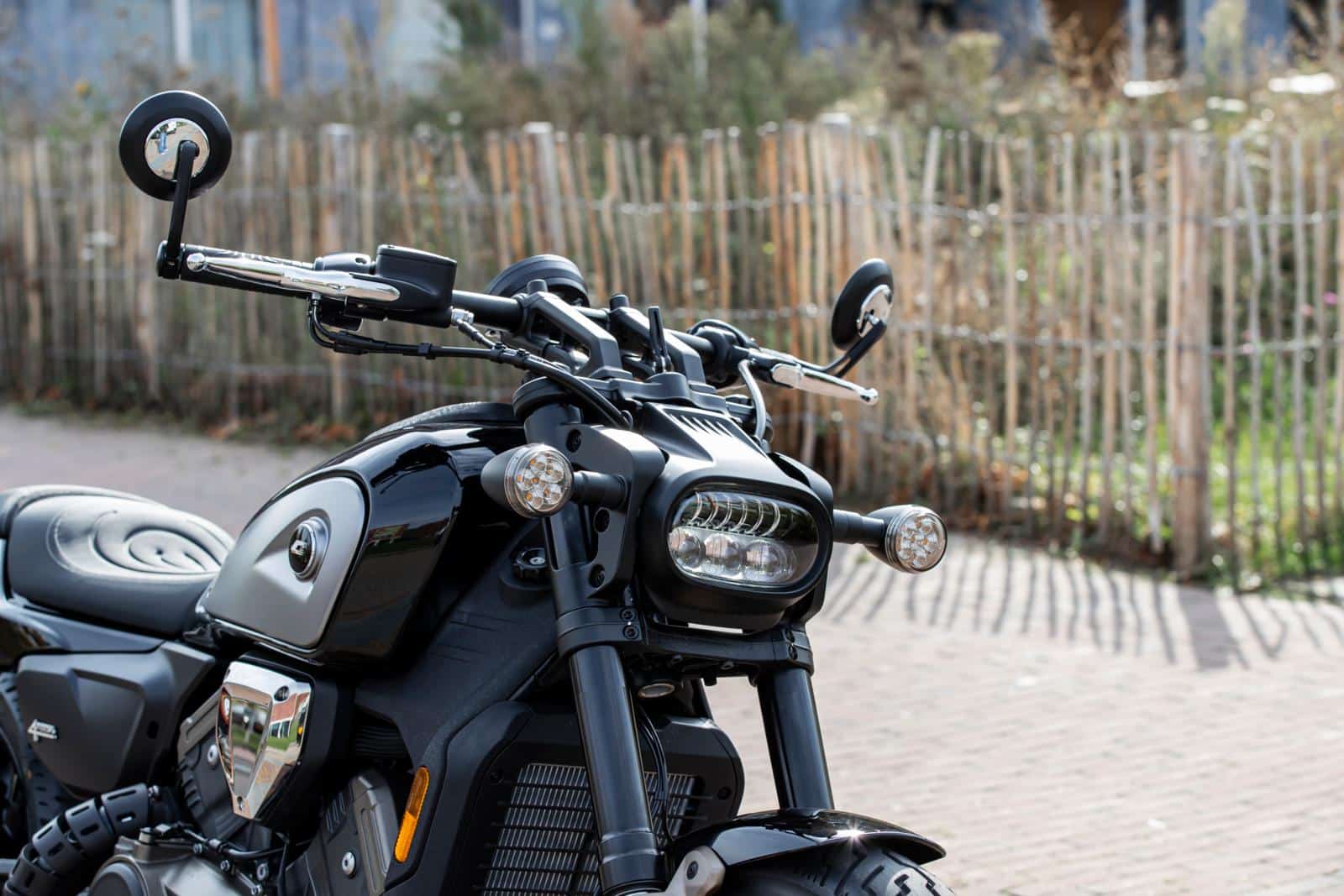 Je kent het gevoel wel. Je gaat op tweede date, en iets springt meteen in het oog: heeft ze iets met d’r haar gedaan? Zat dat moedervlekje de eerste keer ook al op haar bovenlip? Een neuscorrectie, of nieuwe oorbellen misschien? Exact dat gevoel besluipt ons tijdens het obligate rondje vooraf. Tot het kwartje valt: de vier shotgun-uitlaatdempers – twee aan elke kant – zijn anno 2025 vervangen door een enkele, zwartgekleurde demper per zijde. Een tikkeltje jammer, dit. Al laat de importeur weten dat er geen andere keus was dan de uitlaatlijn te herzien, teneinde aan Euro5+ te voldoen. Aan prestaties wordt evenwel niet getornd, belooft de man ons op z’n communiezieltje.