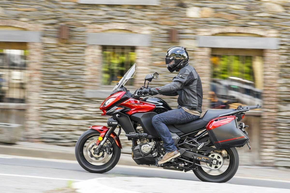 Waar de Versys zich echt in onderscheidt ten opzichte van zijn concurrenten is het motorblok. De viercilinder kennen we van de Z1000 en Z1000 SX en levert maximaal 120 pk bij 9.000 tpm. Het draait rustig en soepel. Het is duidelijk te voelen dat het blok is afgesteld voor vermogen in het lage- en middengebied. Lekker comfortabel rondtuffen gaat dus prima, geen verassingen en vreemde dips of uitschieters in de vermogensband. De Versys 1000 is een motor om heel lang, heel ontspannen op te rijden.