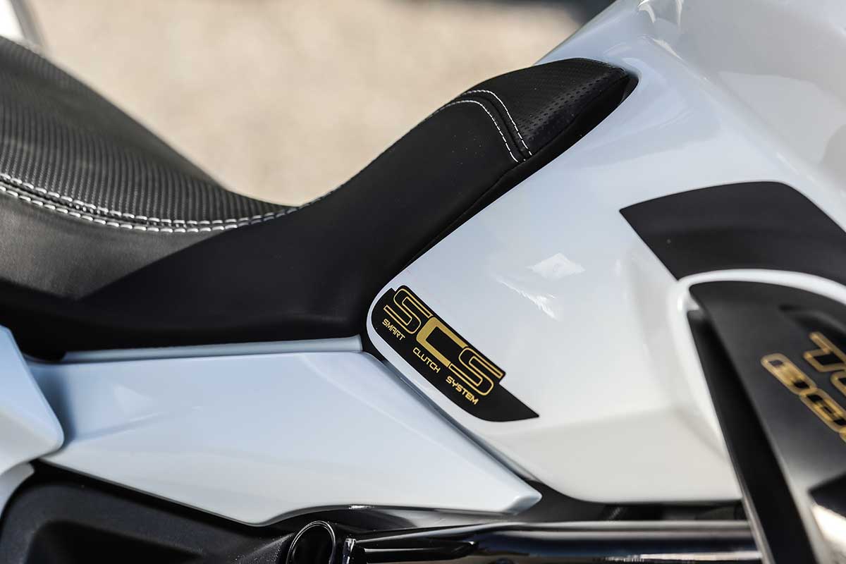 Die dag kan ik zowel met de versie met conventionele koppeling rijden als met het SCS-model, die verder identiek is. De standaardversie schakelt bijzonder soepel. Je tikt hem probleemloos door de zesversnellingsbak heen-en-weer met behulp van de in twee richtingen werkende quickshifter, die bij dit model tot de standaarduitrusting behoort. Het SCS-model is dan toch een tikje minder soepel op de buitenwegen. Hij schakelt een beetje stroever en vind nogal eens een neutraalstand waar hij niet hoort te zitten. Maar dat maakt hij meer dan goed in het stadsverkeer, waar de automatische koppeling ervoor zorgt dat je het linker handel met rust kunt laten, zelfs als je helemaal tot stilstand komt. De koppeling koppelt automatisch als het toerental stijgt, dus je kunt het gas zonder bezwaar open draaien als je weg wilt rijden, zelfs al draai je de gasgreep tot aan de stuit. Het SCS-systeem werkt echt, al maakt het af en toe een foutje (mijn motor sloeg een keer af, wat niet zou moeten kunnen). Dit systeem zou pas echt van pas komen als je door het drukke verkeer van een echt grote stad zou rijden.