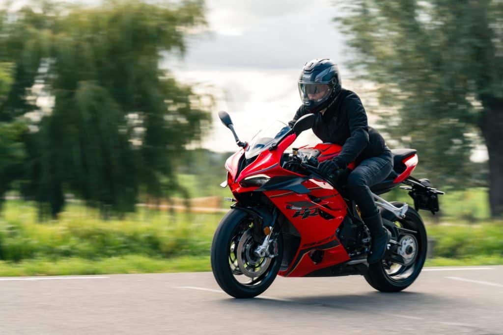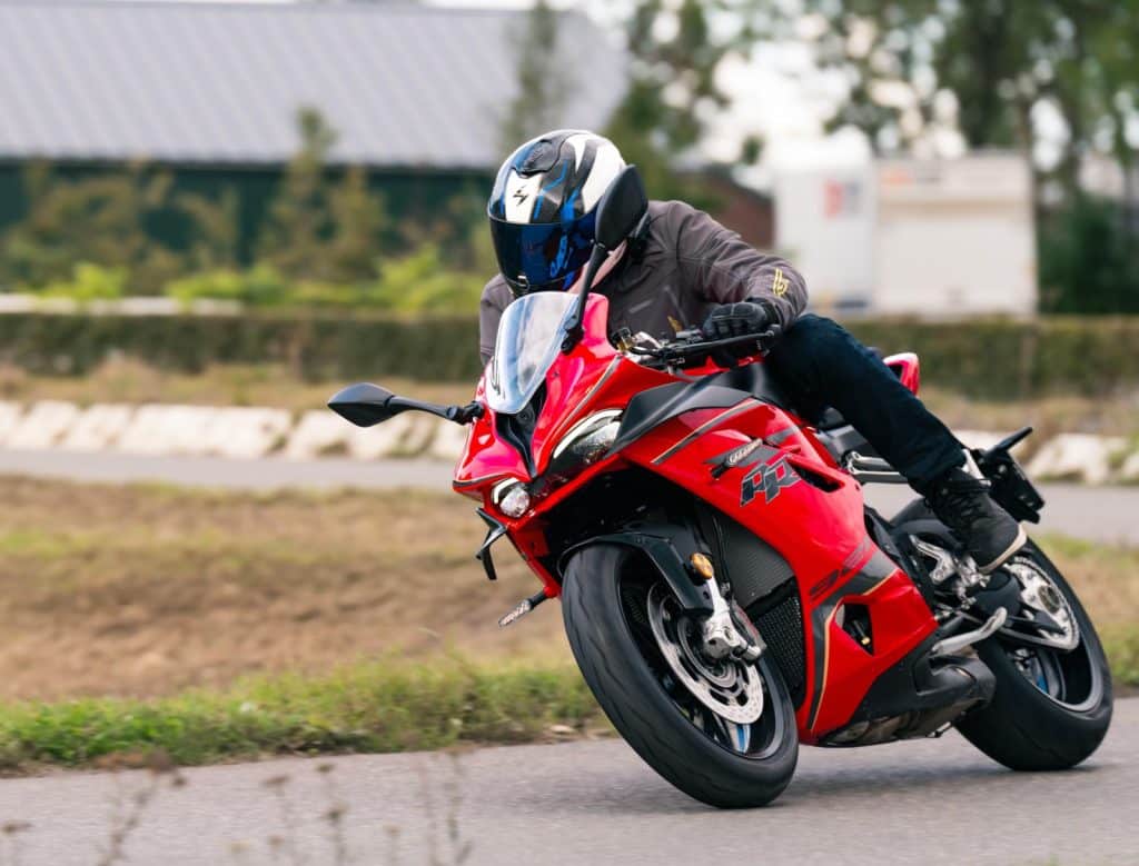 ‘De SRK 600 RS heeft een minder sportieve houding dan de SRK 921 RR. Die vind ik wat te extreem. De 800 naked bike vind ik ook heel prettig, maar op de 600 RS zat ik het comfortabelst. Je weet dat je opgevouwen op een sportmotor zit, maar dat is een keuze waar je mee moet leven.’