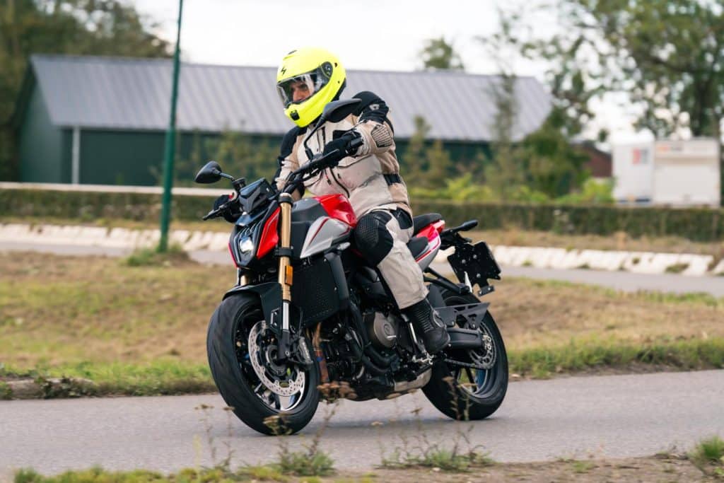 Tim houdt QJMotor al langer dan vandaag in de gaten. Hij vindt het een interessant merk met mooie, betaalbare modellen. Hij had eerder al eens op een QJMotor gezeten, maar er nog nooit mee gereden. Daar komt vandaag verandering in. ‘Vooral de sportmotoren zijn behoorlijk indrukwekkend als je ze ziet staan. De naked bikes hebben een eigen gezicht. Dat is wel behoorlijk behoudend, maar het schrikt nieuwe kopers ook niet af. Ze zien er volwassen uit én goed afgewerkt.’
