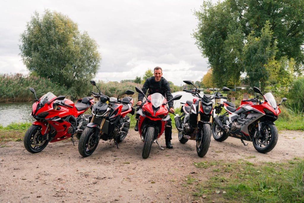 ‘De mooiste motor van dit vijftal is zonder twijfel de SRK 921 RR. Wat een prachtige machine is dat! Vergelijk het met de Panigale in de Ducati-modellenlijn: pure schoonheid.’