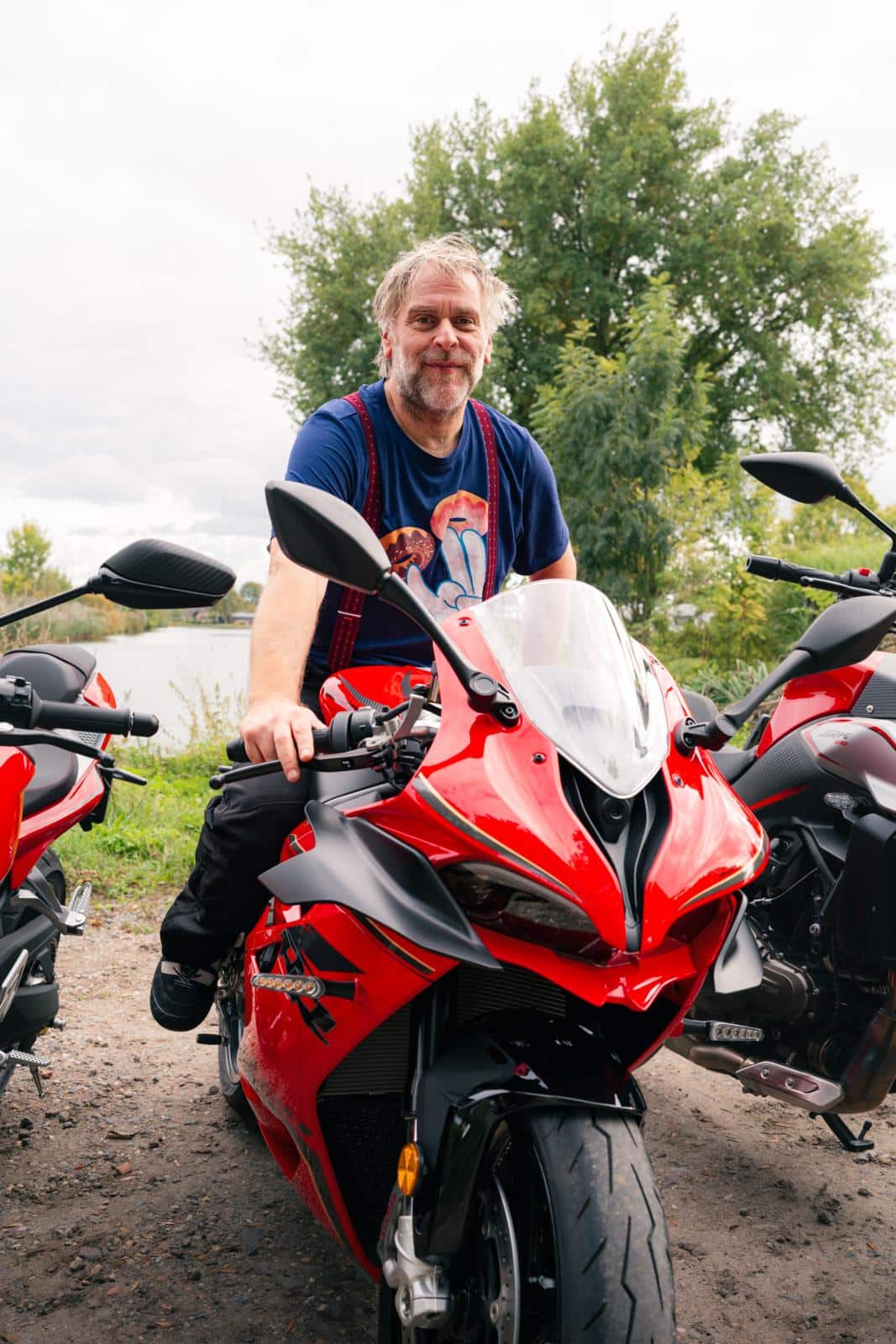 ‘De SRK 800 naked bike is voor mij het comfortabelst omdat die het meest overeenkomt met mijn eigen motor. Hij ligt mij het best. Toch vind ik de ergonomie van de 921 beter, omdat je je door de zithouding één voelt met de motor. Je omhelst hem als het ware met armen en benen. Het rijcomfort is uiteraard een stuk minder dan dat van de naked bikes.’