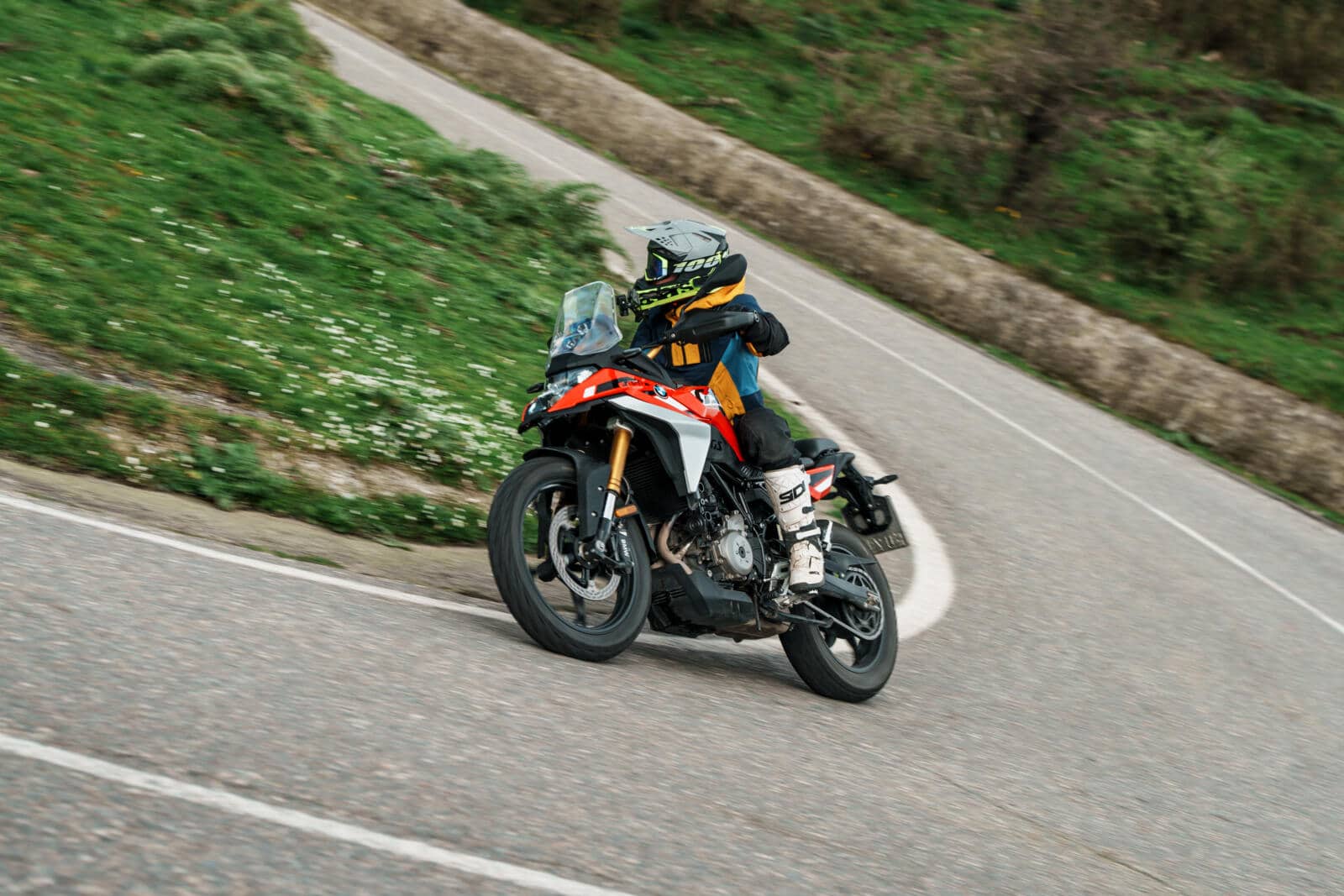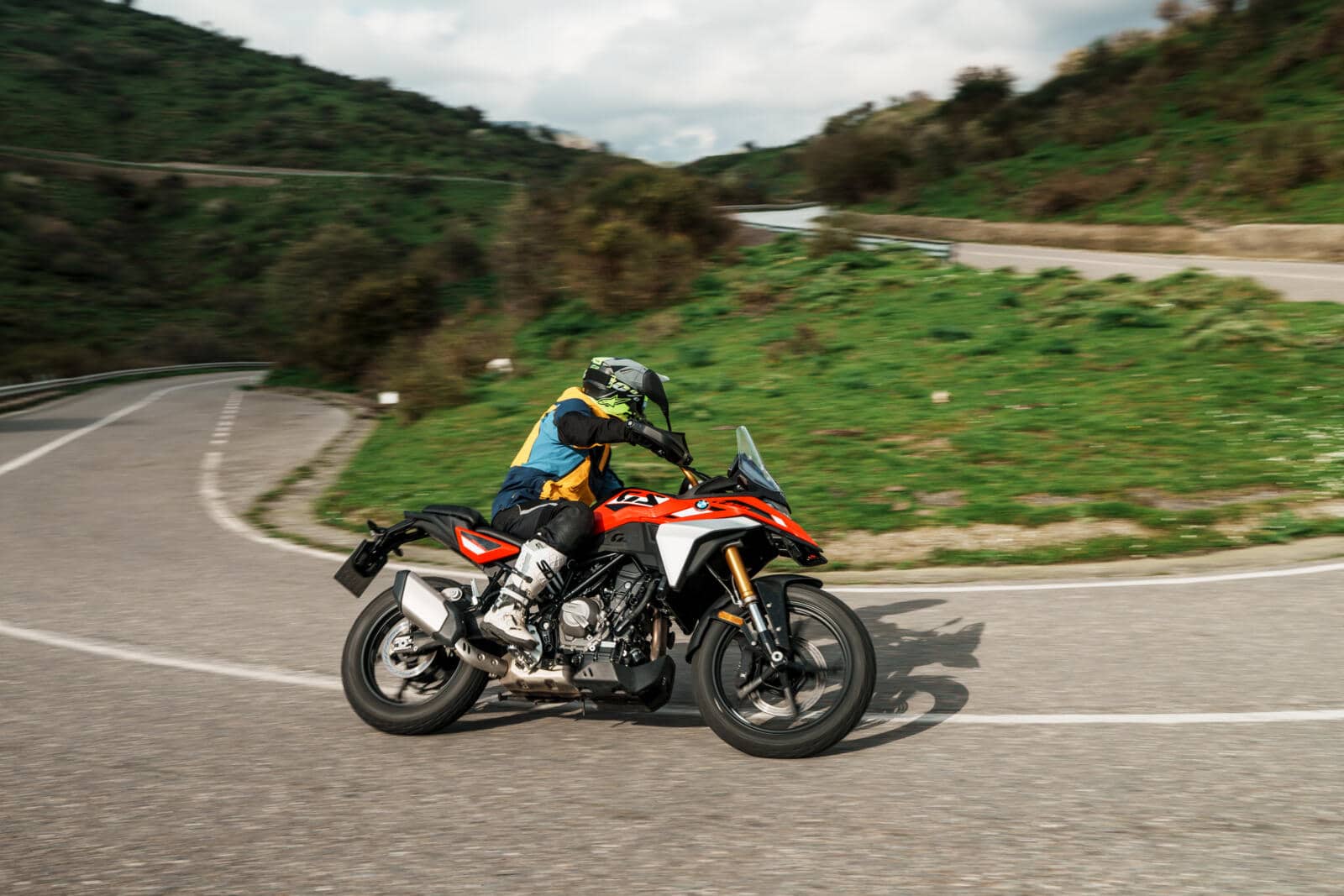 Vanop de eerste meters maakt de F 450 GS vooral indruk met z’n sérieux. Niet omdat hij de meest vinnig sturende of flitsend reagerende motor uit z’n klasse zou zijn, wel omdat hij meteen vertrouwen geeft. Op goed asfalt merk je dat aan de rust waarmee hij een gekozen lijn vasthoudt, op kapotgereden bergwegen vooral aan de manier waarop hij zich niet uit z’n lood laat slaan door richels, putten of verkreukelde remzones. Geen opgefokte lichtvoetigheid, wel rust. En op een allroad is dat vaak een waardevollere eigenschap.