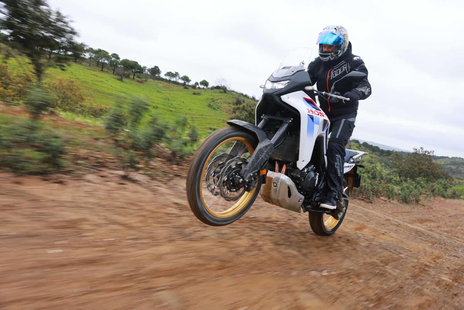 Onze eerste kilometers maken we op de XL750 Transalp, en dat blijkt een uitstekende kennismaking. De allroad is sinds zijn comeback uitgegroeid tot een van Honda’s sterkste middenklassers. Dat heeft hij te danken aan een toegankelijk chassis, een comfortabele ergonomie en een levendige 755cc-paralleltwin die genoeg punch levert om zowel relaxt te toeren als stevig door te rijden.