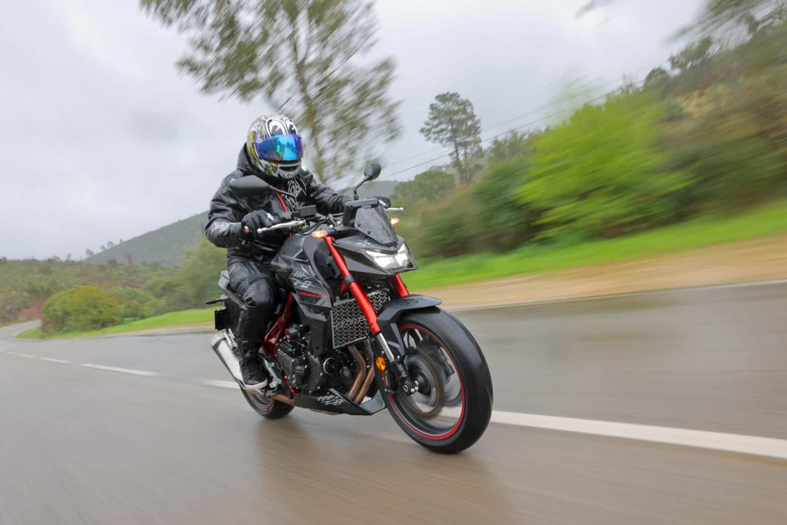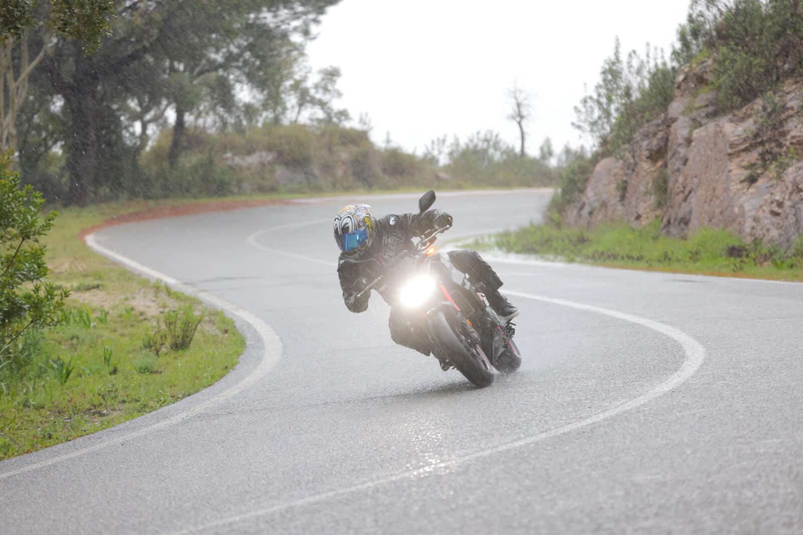 En net dat maakt deze sessie interessant. Want technologie moet niet alleen op een droge demo-route overtuigen, maar ook onder slechte omstandigheden vertrouwen geven. De Hornet doet dat, samen met de Michelin-banden en opvallend griprijk Portugees asfalt, bijzonder goed. Zelfs in de regen blijft het totaalpakket vertrouwen uitstralen.