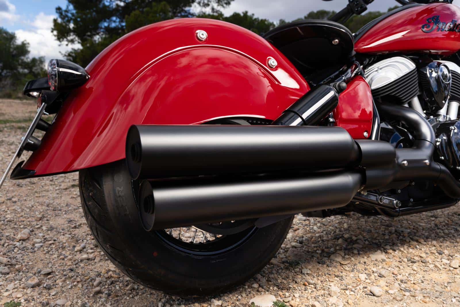 We hadden nog een laatste vraag voor Stenegärd, want de man was druk. We waren heel benieuwd naar wat hij zou veranderen aan het design van de nieuwe Chief Vintage als hij met niets of niemand rekening moest houden. ‘Er zijn twee dingen die ik graag had gezien. Het eerste is een dashboard op de benzinetank. Dat zou zo cool geweest zijn, hoewel deze set-up met Ride Command er ook zeker mag zijn. Het tweede is een andere uitlaat. Motorrijders hebben geen idee hoe moeilijk het is en hoeveel geld het kost om een motorfiets gekeurd te krijgen. De uitlaat is daar altijd de dupe van. Vergeet niet dat dit een luchtgekoelde V-twin is, geen vloeistofkoeling, geen oliekoeler, niets. Ik ben blij met deze dubbele uitlaat, maar er is altijd ruimte voor verbetering.’