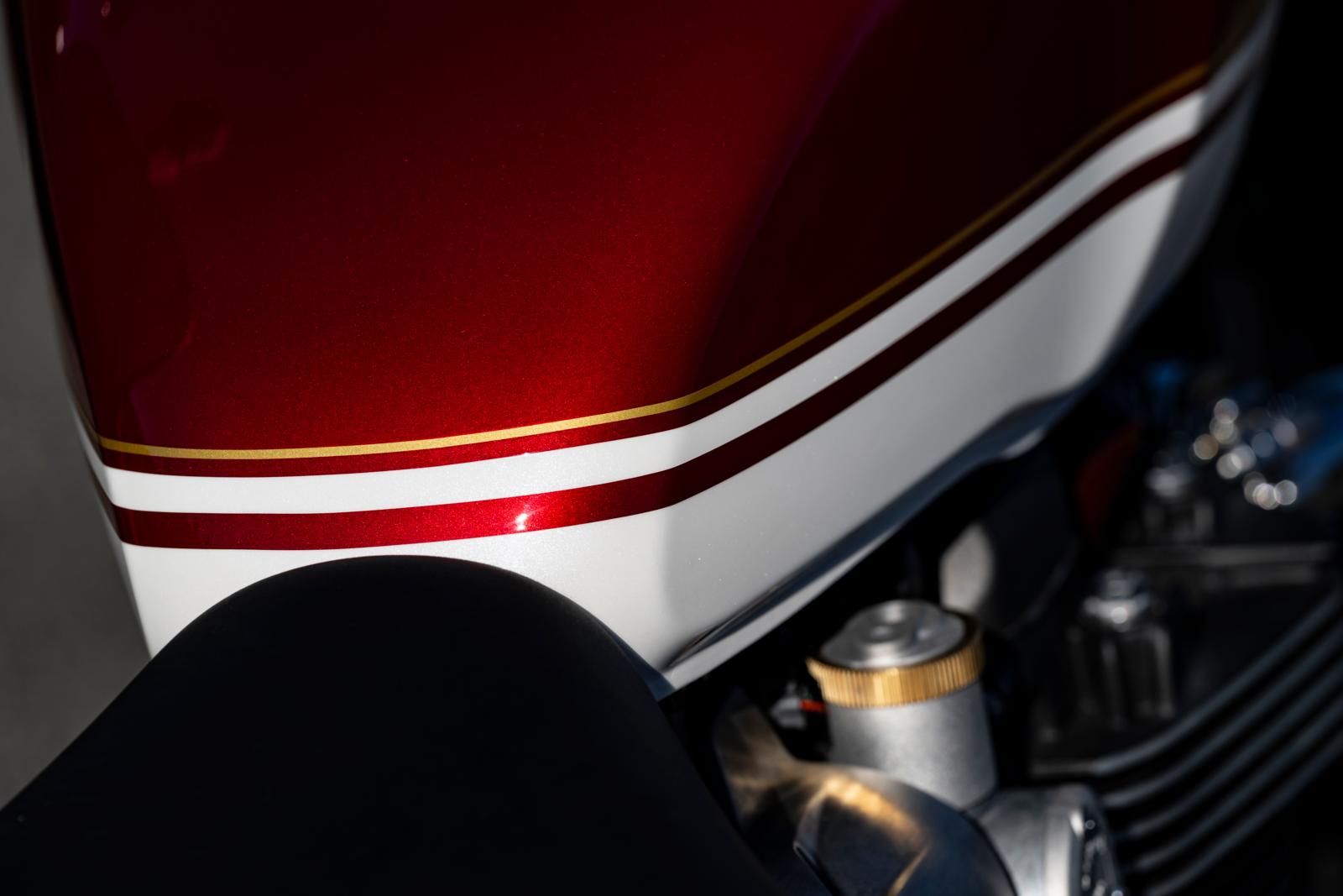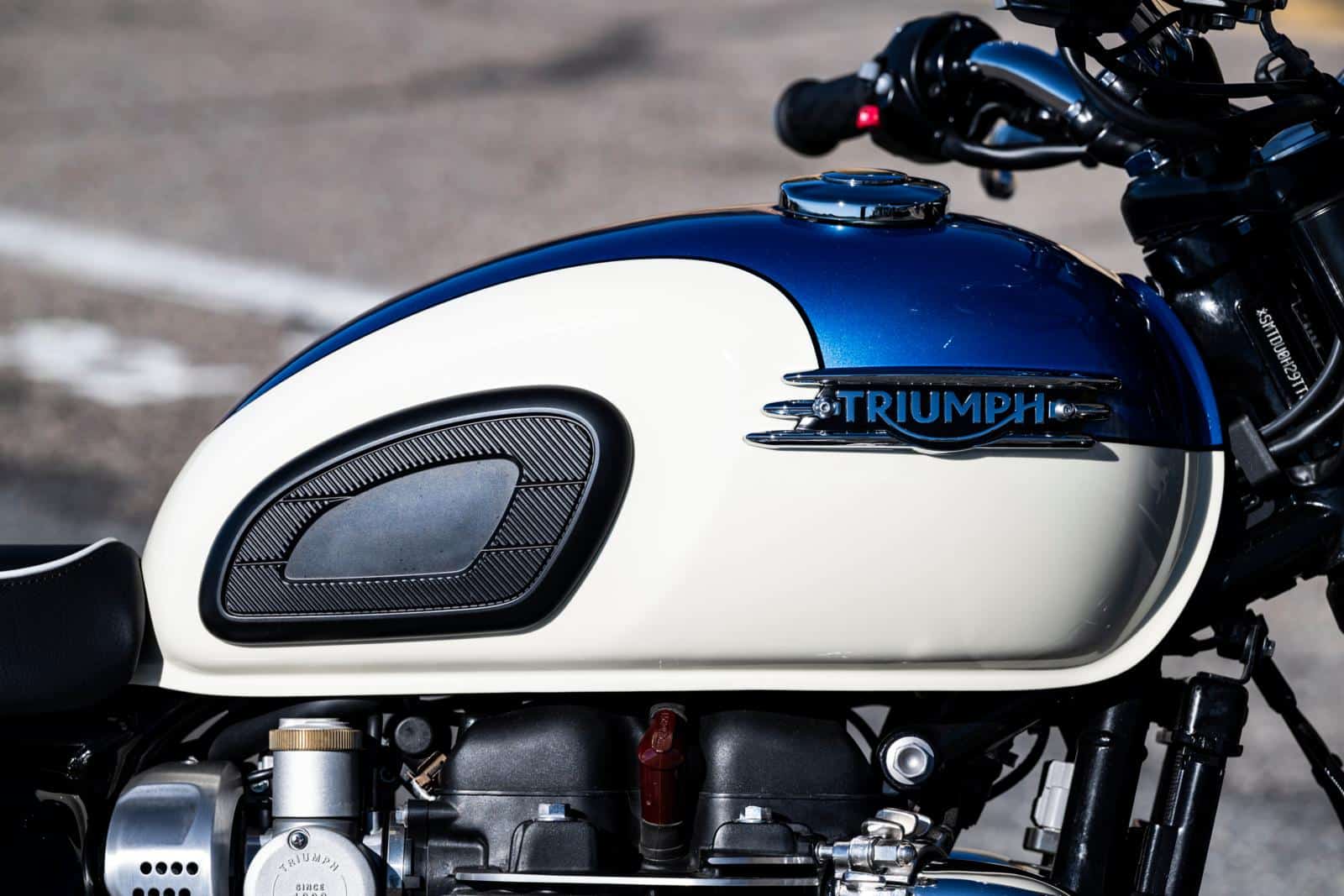 ‘Bobber’ klinkt dan weer een stuk duidelijker en vooral gepaster. Een van de mooiste en origineelste modellen uit het Triumph-gamma bewaren we voor het laatst. Het is zonder twijfel een opvallende verschijning, maar zeker geen schreeuwerige. De kleuren, het lijnenspel, de verhoudingen… Alles klopt aan deze machine. Het is wel even zoeken waar je de sleutel moet steken als je opstapt, maar de Speedmaster haalde hetzelfde geintje met ons uit. Rechts onderaan ‘in’ het motorgedeelte is de juiste oplossing. Je moet het weten, want anders lachen ze je vierkant uit…