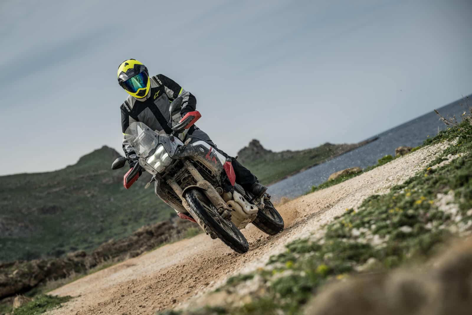 Al vanaf de eerste kilometers van onze testrit geeft het rijwielgedeelte een bijzonder degelijke indruk. De sportief afgestelde vering zorgt voor een scherp stuurgedrag én veel stabiliteit, waardoor het vertrouwen in de machine meteen aanwezig is. Het barslechte wegdek maakt mede door de nieuwe stuurdemper weinig indruk op de World Raid en de standaard gemonteerde Pirelli Scorpion Rally’s doen hun reputatie als alleskunners alle eer aan. De nieuwe vering is goed, dat is duidelijk. Ook wanneer we voor het eerst offroad gaan, blijkt meteen dat Yamaha voortreffelijk werk geleverd heeft. De WR laat zich bijzonder gemakkelijk sturen en de vering incasseert op sublieme wijze de soms erg ruige bodem van Sicilië. Het traject bestaat uit snelle gravelstroken, afgewisseld met stenige, technische passages. Zowel zittend als rechtstaand is het een genot om de WR te sturen en telkens verbaast de machine met welk gemak alle klappen worden geabsorbeerd. Maar verwacht geen vliegend tapijt. Daarvoor is de basissetting van de vering te sportief. Wil je meer comfort, dan moet je aan de gang met de instellingen en zal een zachtere veervoorspanning en ingaande demping allicht een wereld van verschil betekenen.
