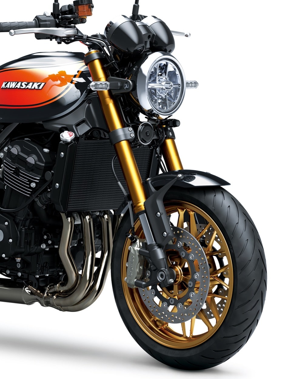 Kawasaki heeft aandacht besteed aan afwerking en design. De nieuwe, langere megaphone-uitlaat met een dubbelwandige constructie produceert een diep, herkenbaar geluid en blijft glanzend. Details zoals de teardrop-tank, ducktail en het ovale LED-achterlicht verwijzen naar de iconische Z1, net als de geborstelde koelribben, retro logo’s en analoge tellers.