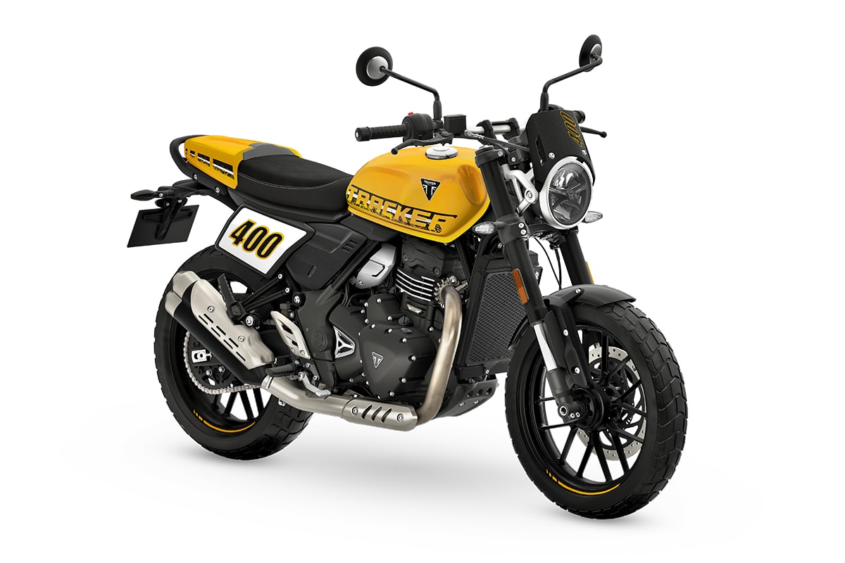 Het ontwerp van de Tracker 400 omvat verschillende iconische Triumph-elementen, waaronder een brandstoftank in tracker-stijl met knie-uitsparingen en een klassieke ronde LED-koplamp. De nieuwe wielen, in combinatie met Pirelli MT60 RS-banden, versterken de sportieve uitstraling van de motorfiets. De Tracker 400 is verkrijgbaar in drie opvallende kleurstellingen: Racing Yellow, Phantom Black en Aluminium Silver Gloss, elk met unieke graphics en details die de racersport eer aandoen.