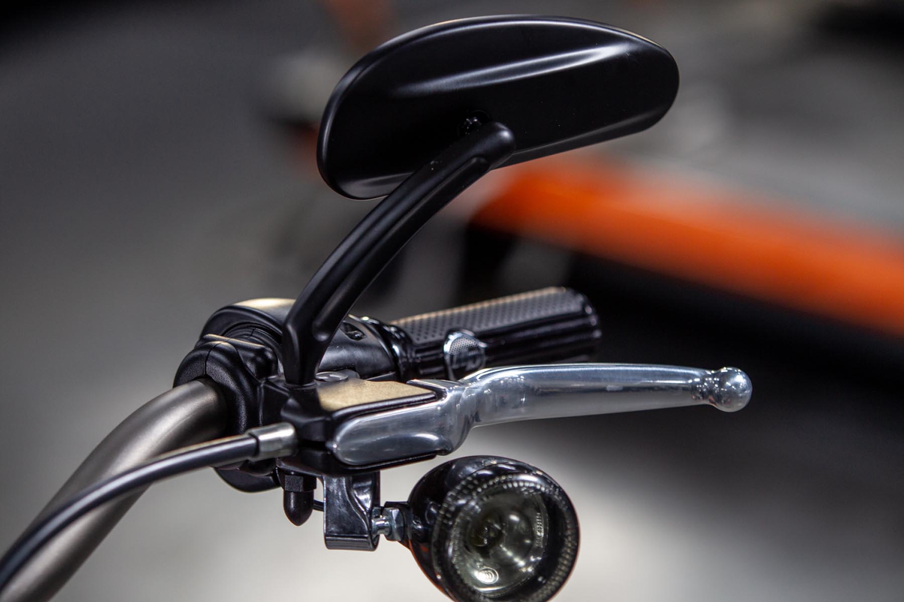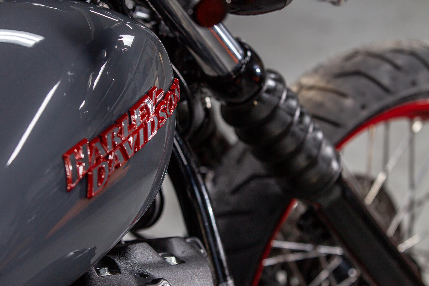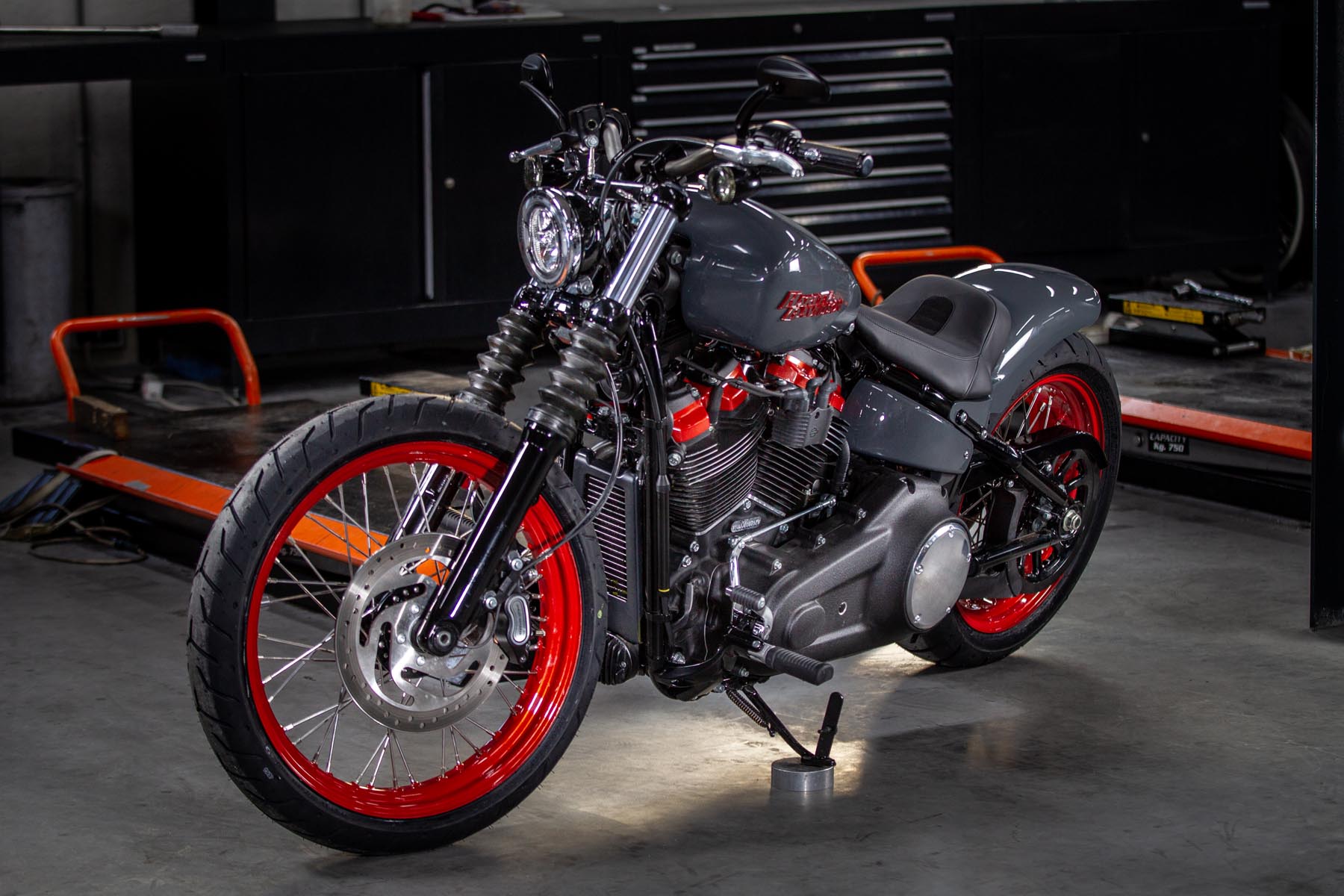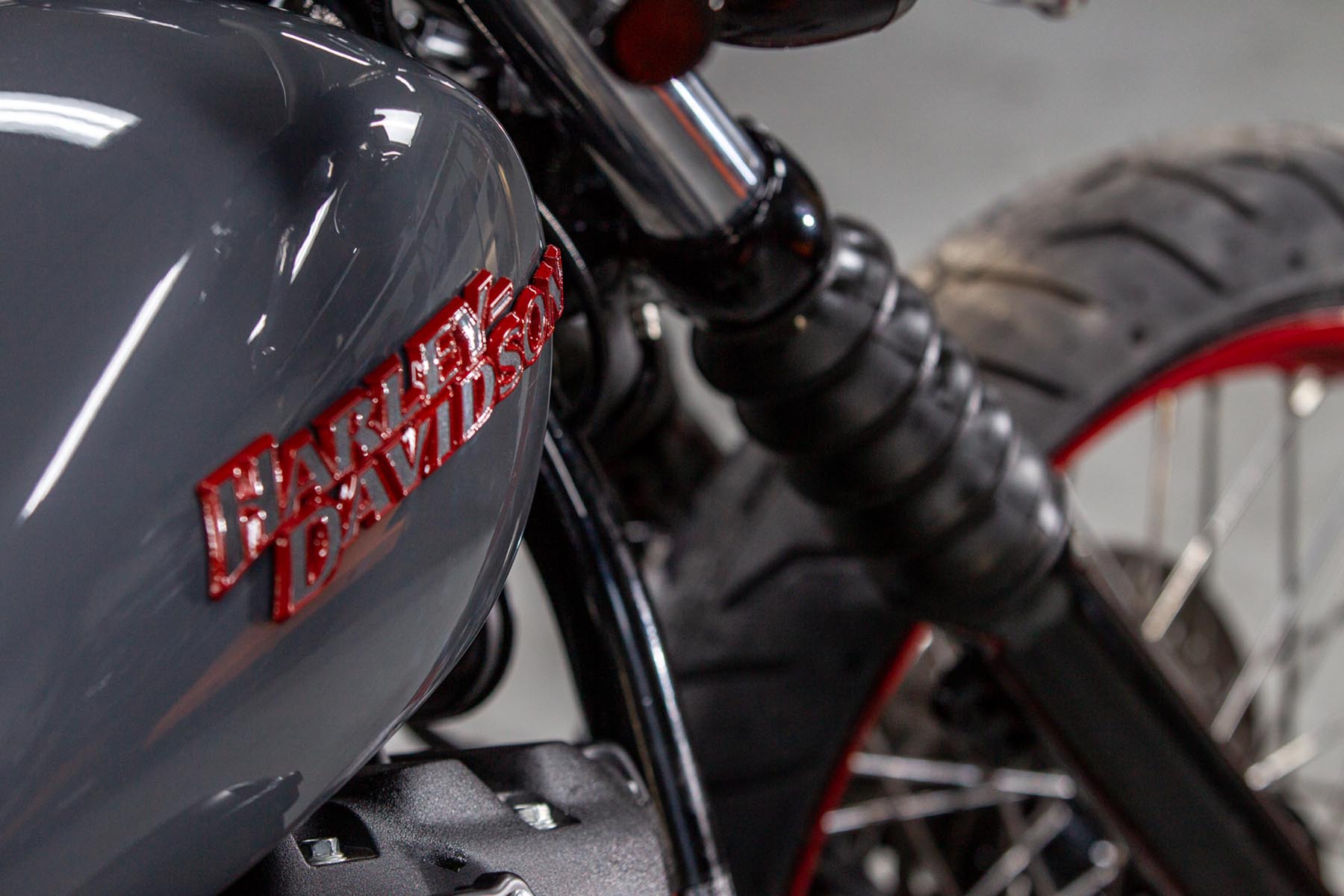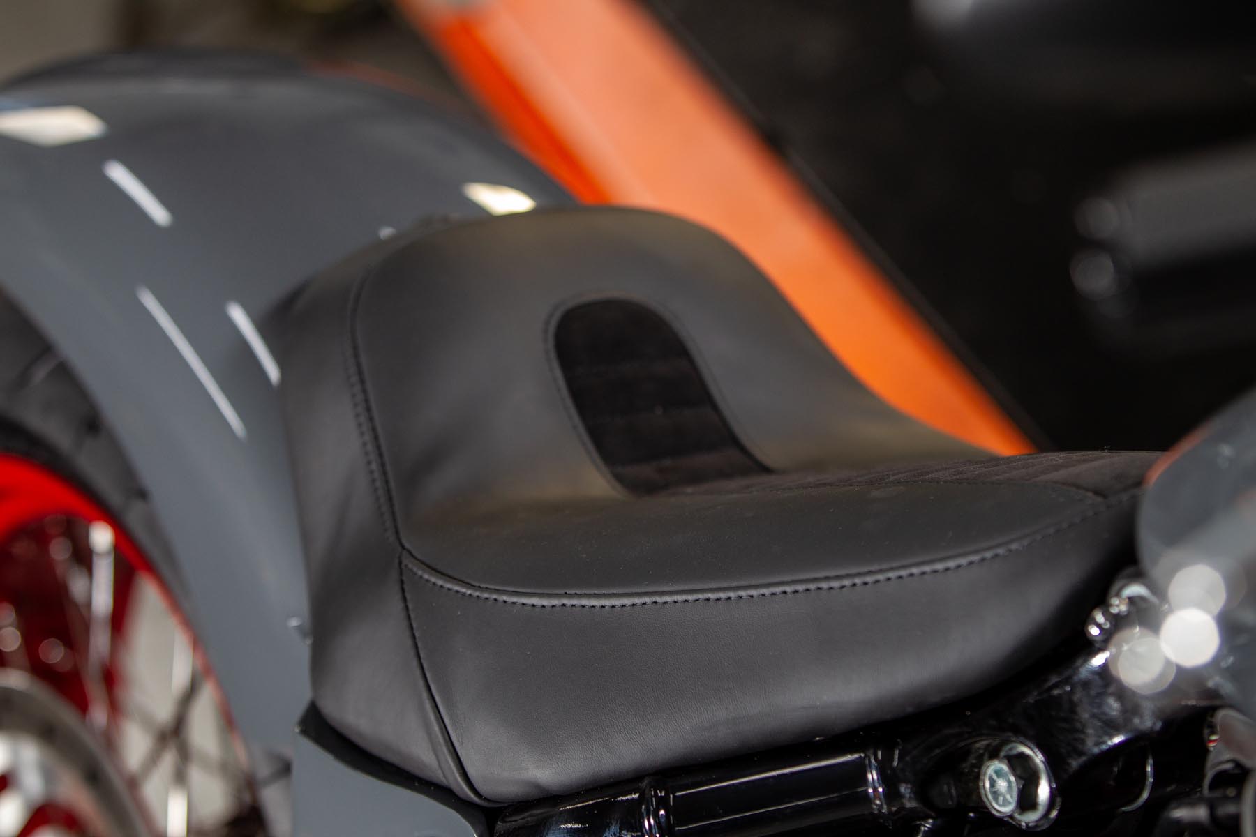 Big Rivers H-D uit Heteren er opnieuw van de partij. Met hun creatie ‘The Gunship’, op basis van een Harley-Davidson Street Bob, verwachten ze hoge ogen te gaan gooien. After Sales Manager Huubke van Boldrik vertelt: ‘De inspiratie voor deze build kwam van de Harley-Davidson CVO-lijn. Deze zeer exclusieve lijn heeft een afwerkingsniveau dat ongeëvenaard is in de motorbranche, met waanzinnige kleurstellingen. Uiteindelijk besloten we de look & feel van de CVO modellijn door te vertalen naar het Softail platform. De kleur van die machine heet Gunship Grey, en zo ontstond de naam – The Gunship – en het bijpassende concept: een agressieve chopper met een indrukwekkende, stoere stance.’ Het team ging aan de slag en voerde nogal wat modificaties door. Zo kreeg de Street Bob een custom achterspatbord, een ander stuur, gewijzigde spaakwielen en een custom zadel. De mid-controls werden naar voren verplaatst en de achterzijde van de machine ging een paar centimeter omlaag. Uit de P&A catalogus kwamen o.a. nieuwe spiegels en handvatten en tenslotte werd er een custom TBR 2-in-1 uitlaatsysteem gemonteerd. Een royale laag hoogglanzende Gunship Grey lak met bordeauxrode accenten en velgen maakte het project compleet. Van Boldrik, met nauwelijks verholen trots: ‘We hebben er keihard aan gewerkt, maar dat zie je er volgens ons ook echt aan af. We zijn als team erg trots op het resultaat. Laat die stemmen maar komen!’