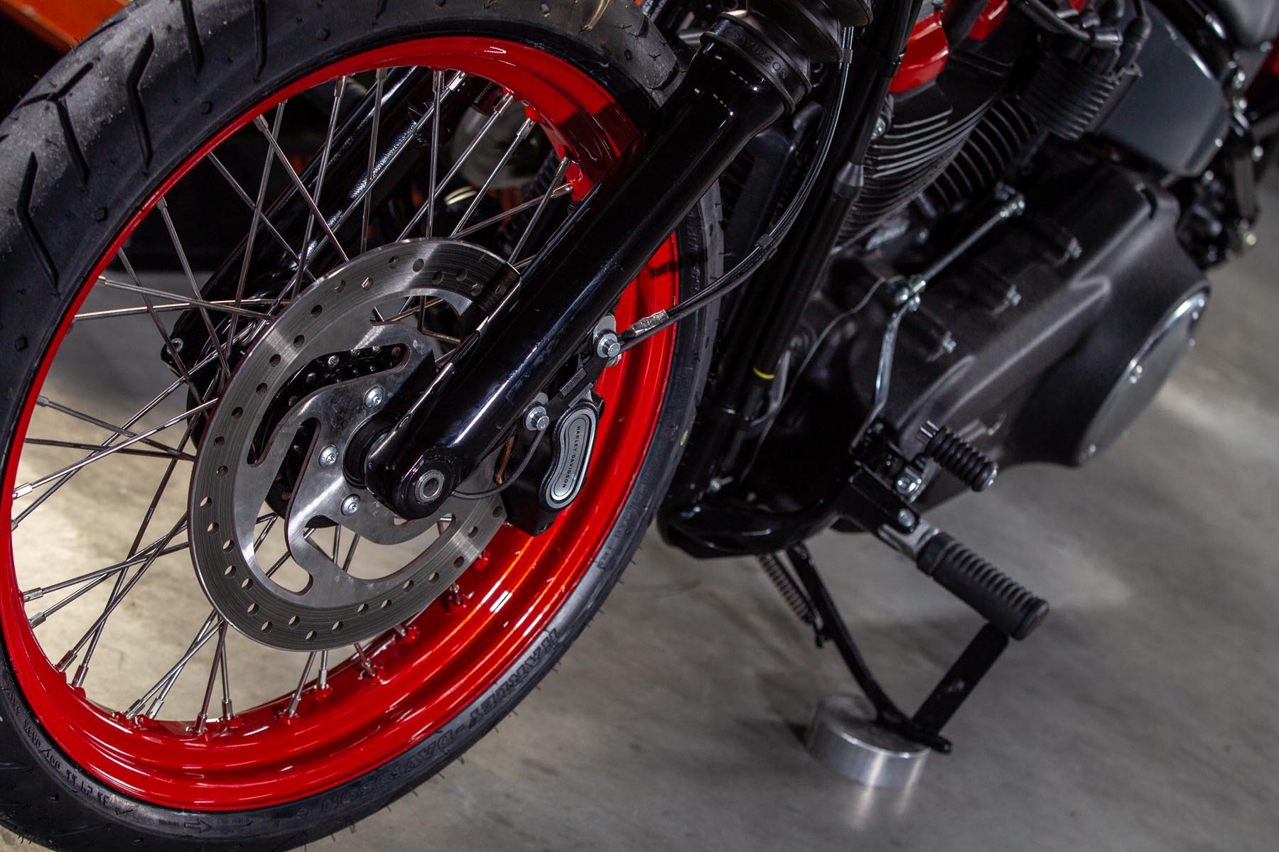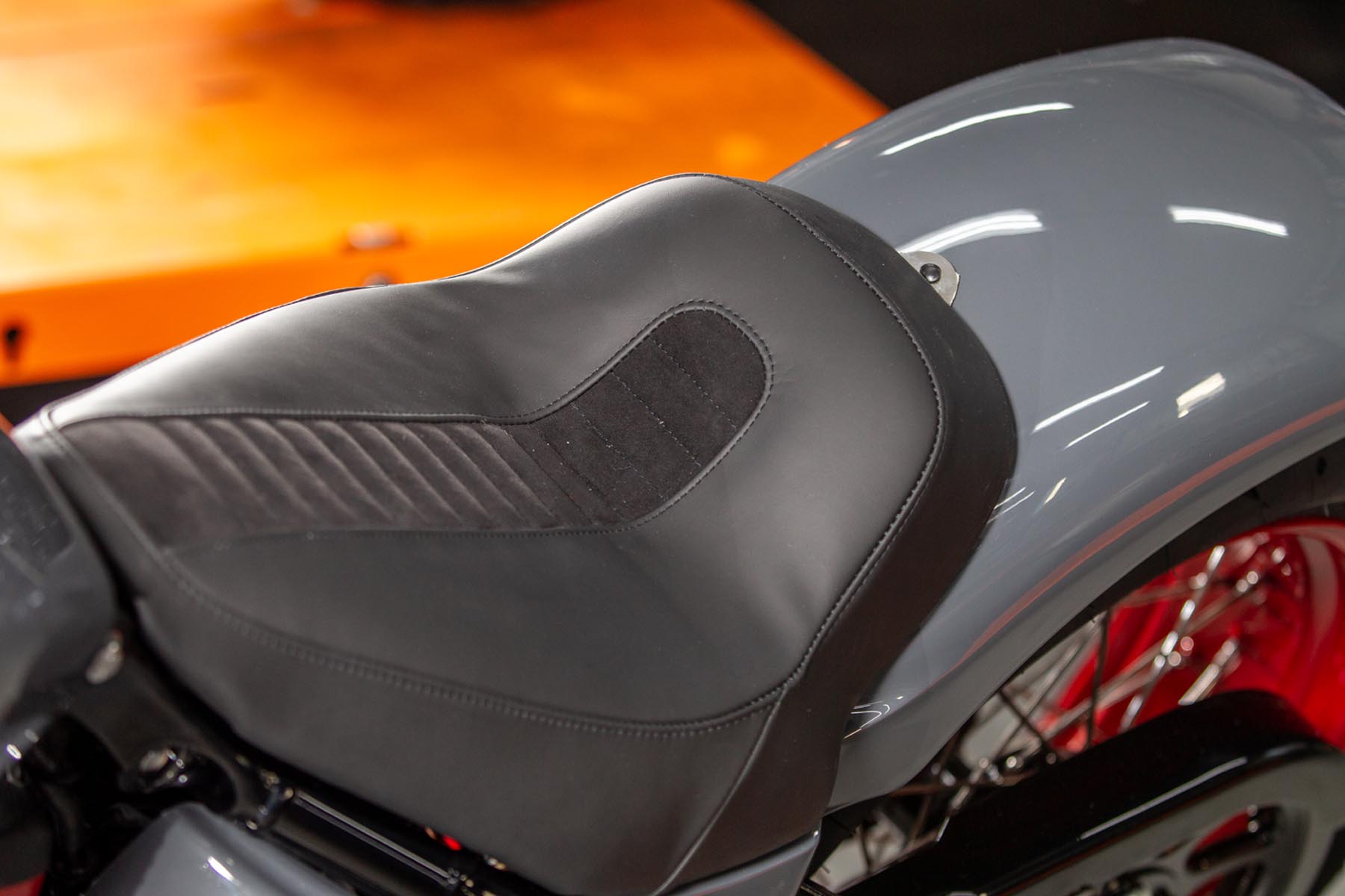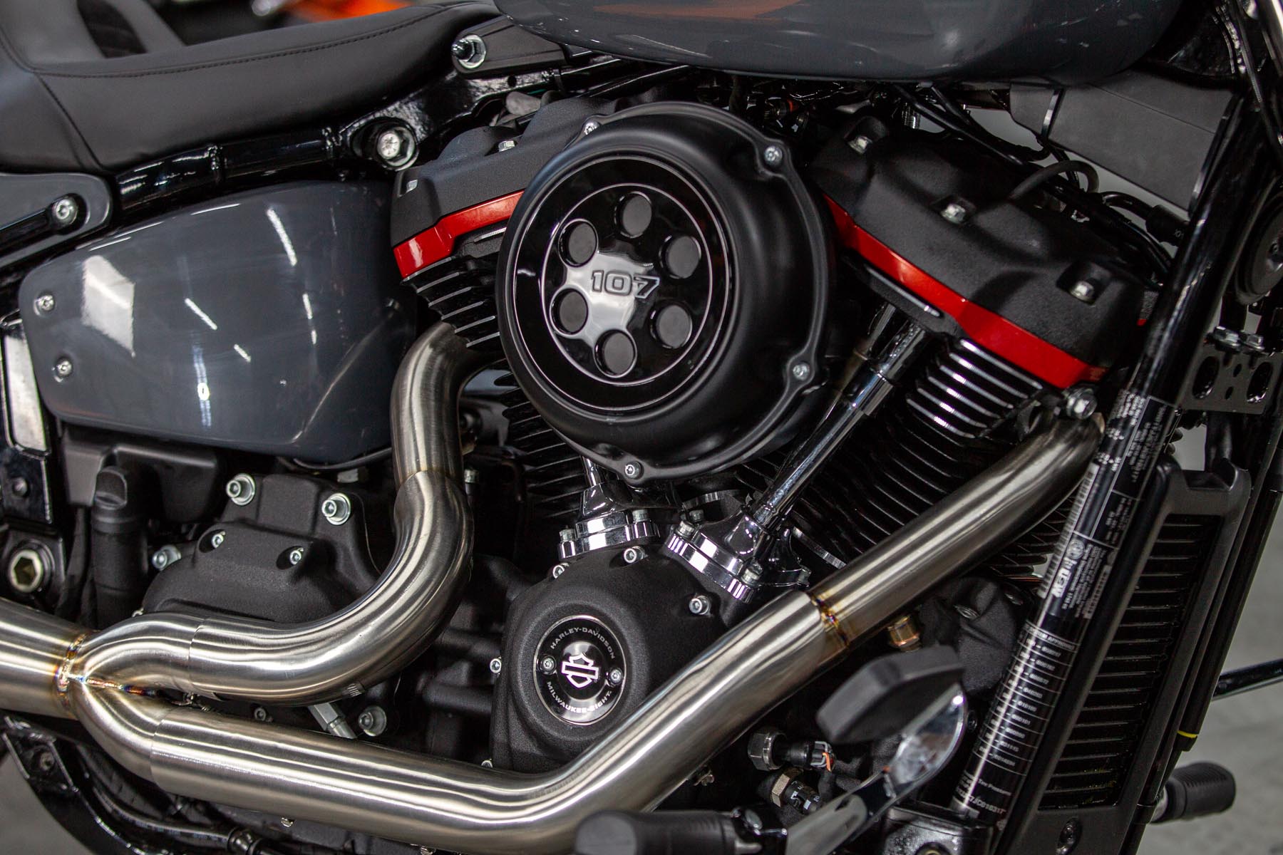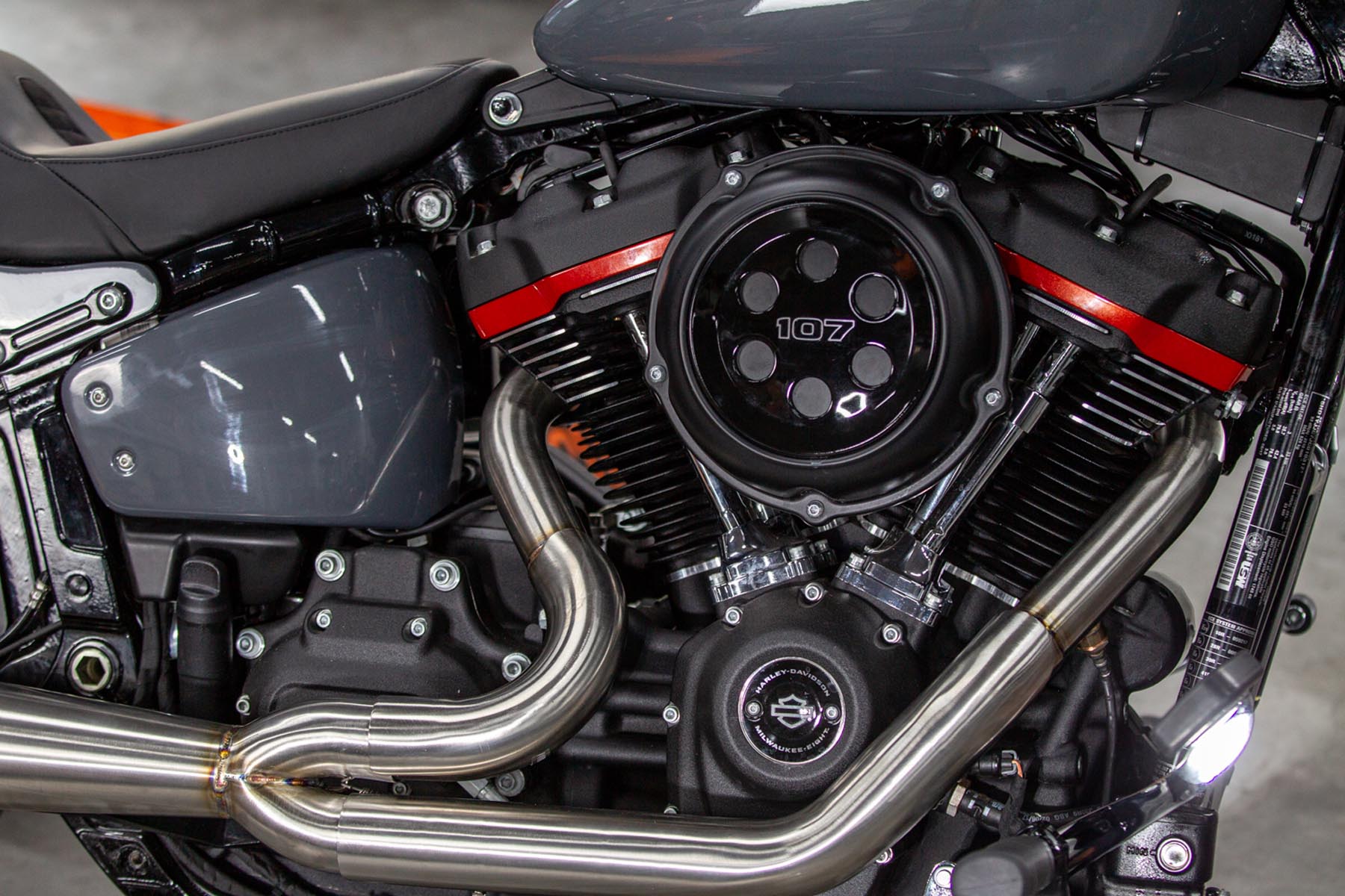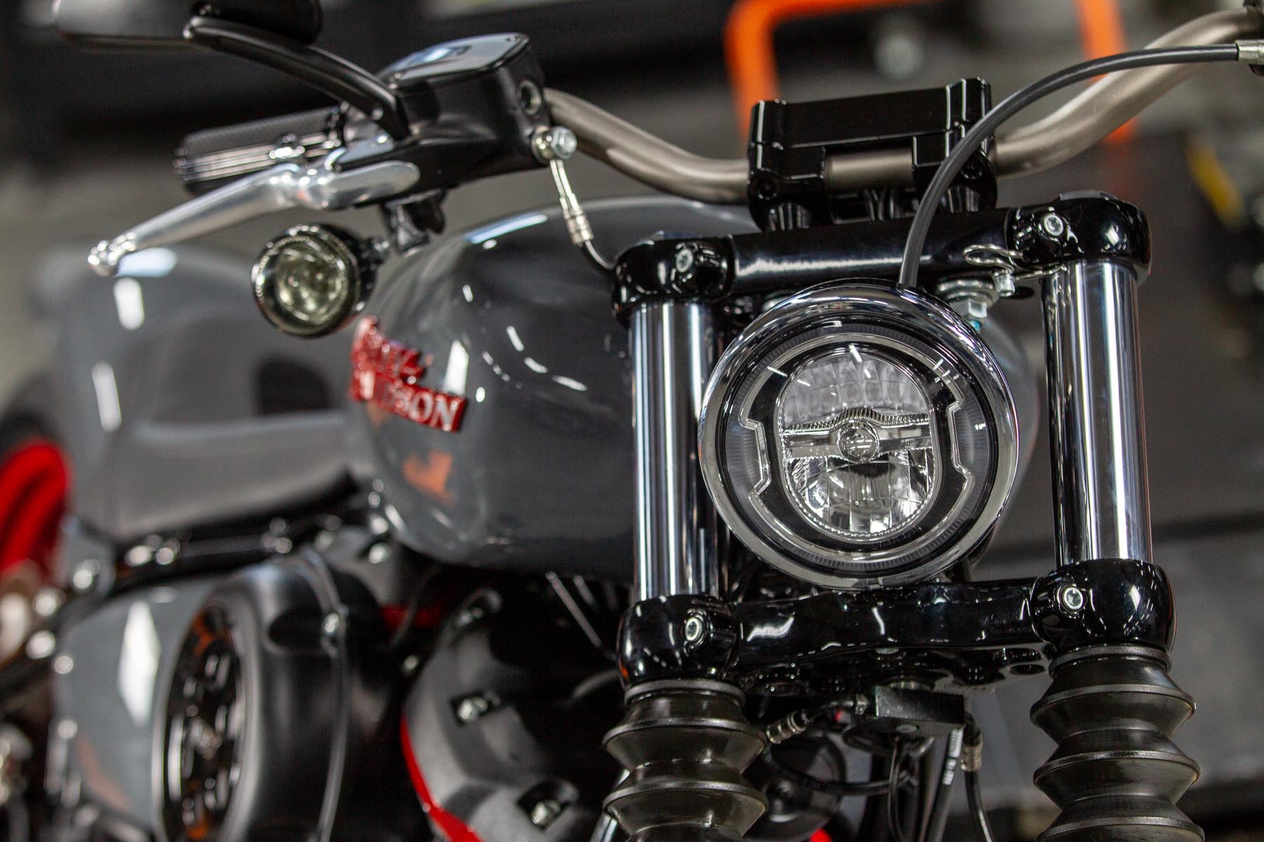 Big Rivers H-D uit Heteren er opnieuw van de partij. Met hun creatie ‘The Gunship’, op basis van een Harley-Davidson Street Bob, verwachten ze hoge ogen te gaan gooien. After Sales Manager Huubke van Boldrik vertelt: ‘De inspiratie voor deze build kwam van de Harley-Davidson CVO-lijn. Deze zeer exclusieve lijn heeft een afwerkingsniveau dat ongeëvenaard is in de motorbranche, met waanzinnige kleurstellingen. Uiteindelijk besloten we de look & feel van de CVO modellijn door te vertalen naar het Softail platform. De kleur van die machine heet Gunship Grey, en zo ontstond de naam – The Gunship – en het bijpassende concept: een agressieve chopper met een indrukwekkende, stoere stance.’ Het team ging aan de slag en voerde nogal wat modificaties door. Zo kreeg de Street Bob een custom achterspatbord, een ander stuur, gewijzigde spaakwielen en een custom zadel. De mid-controls werden naar voren verplaatst en de achterzijde van de machine ging een paar centimeter omlaag. Uit de P&A catalogus kwamen o.a. nieuwe spiegels en handvatten en tenslotte werd er een custom TBR 2-in-1 uitlaatsysteem gemonteerd. Een royale laag hoogglanzende Gunship Grey lak met bordeauxrode accenten en velgen maakte het project compleet. Van Boldrik, met nauwelijks verholen trots: ‘We hebben er keihard aan gewerkt, maar dat zie je er volgens ons ook echt aan af. We zijn als team erg trots op het resultaat. Laat die stemmen maar komen!’