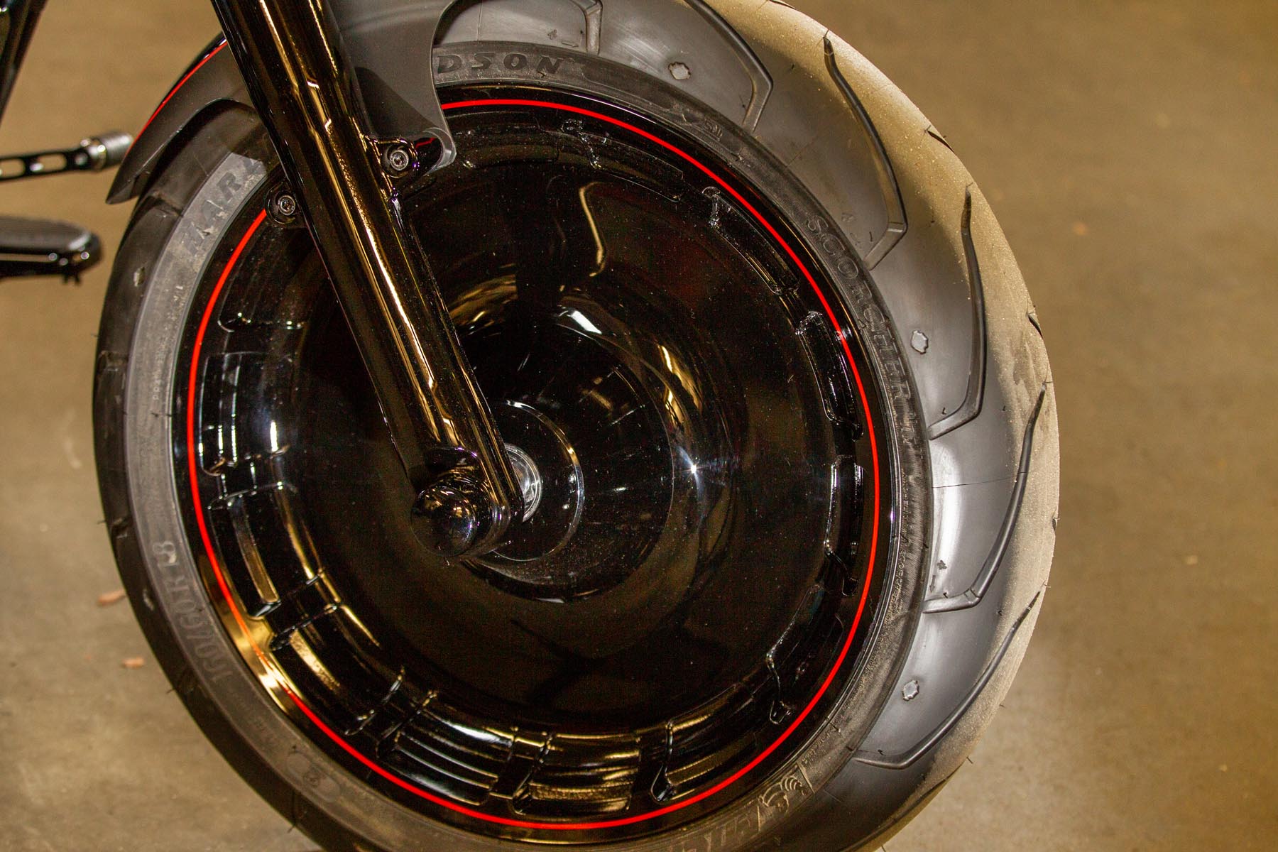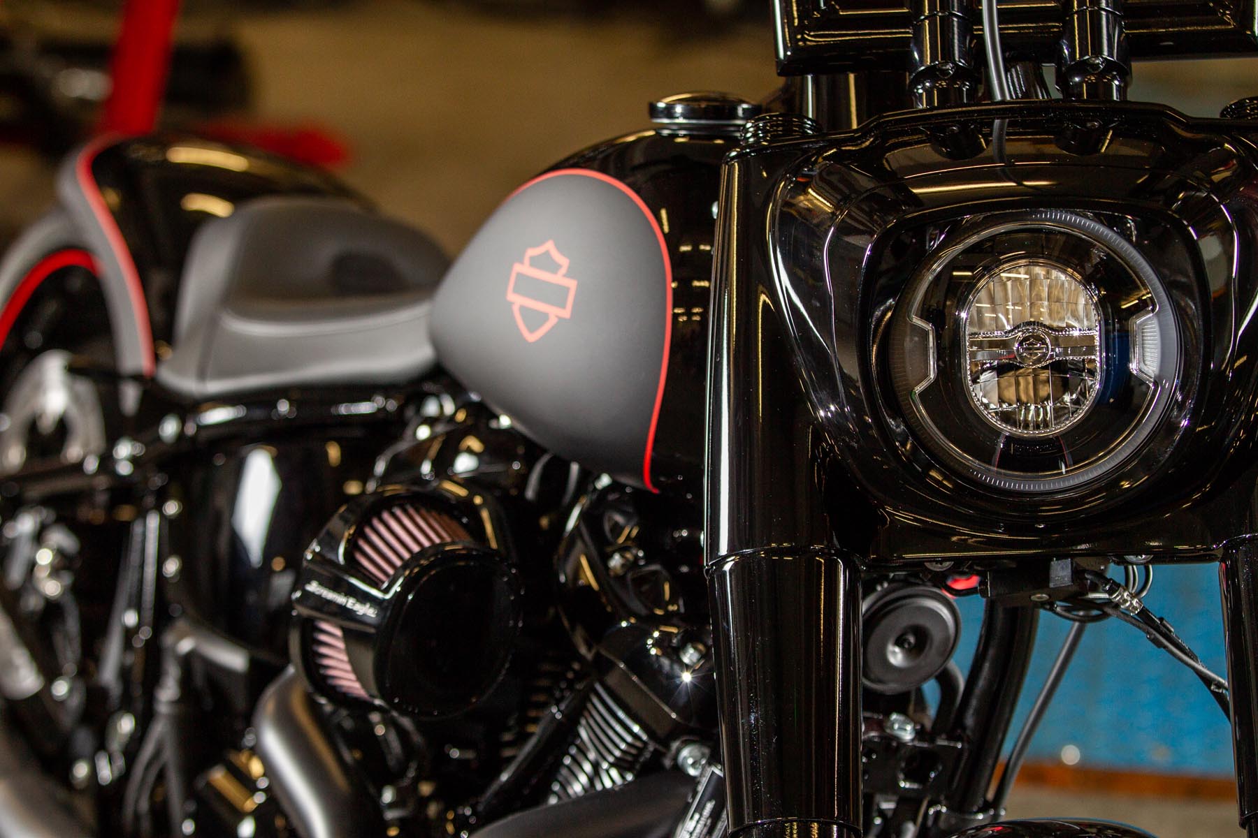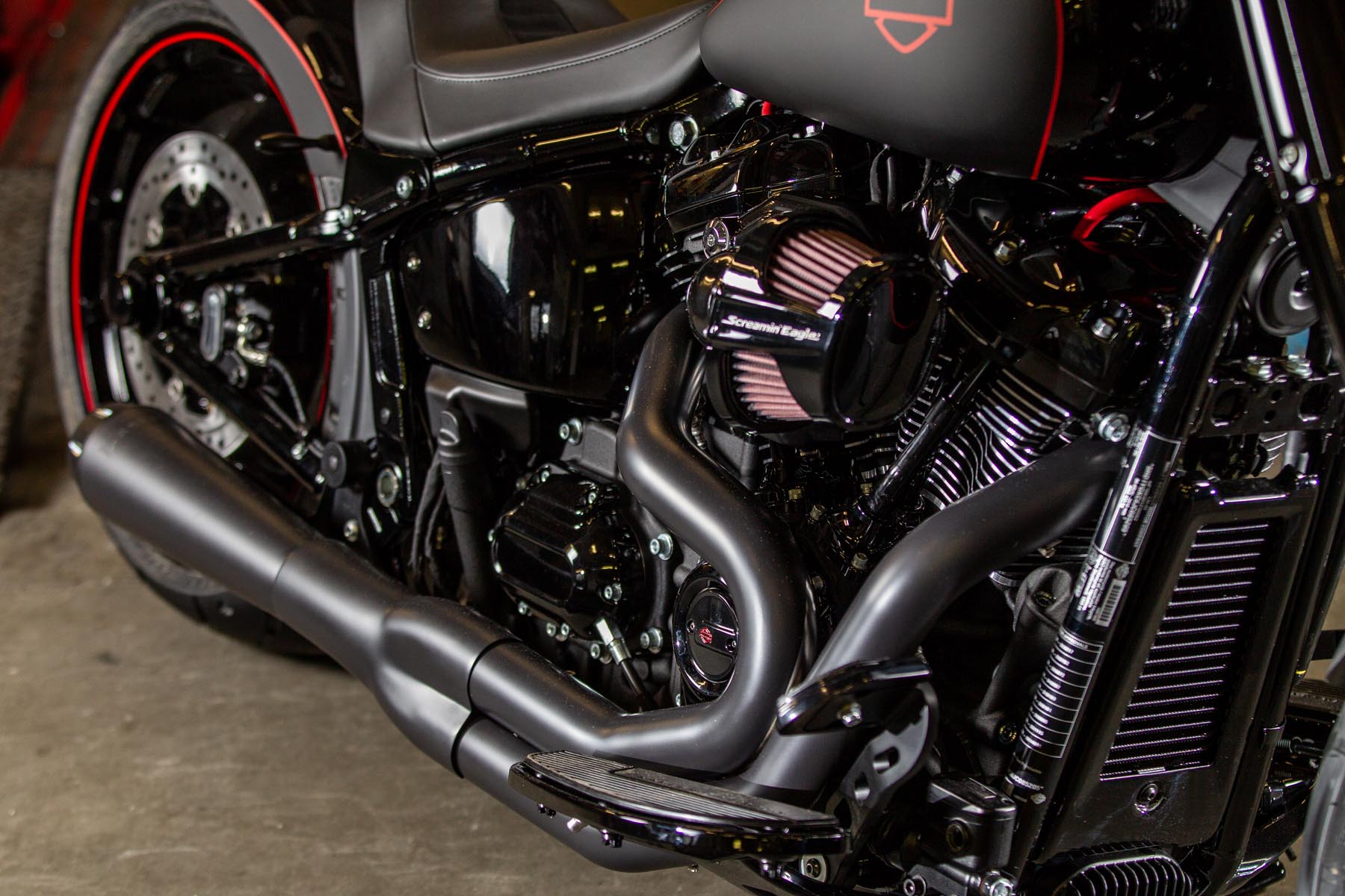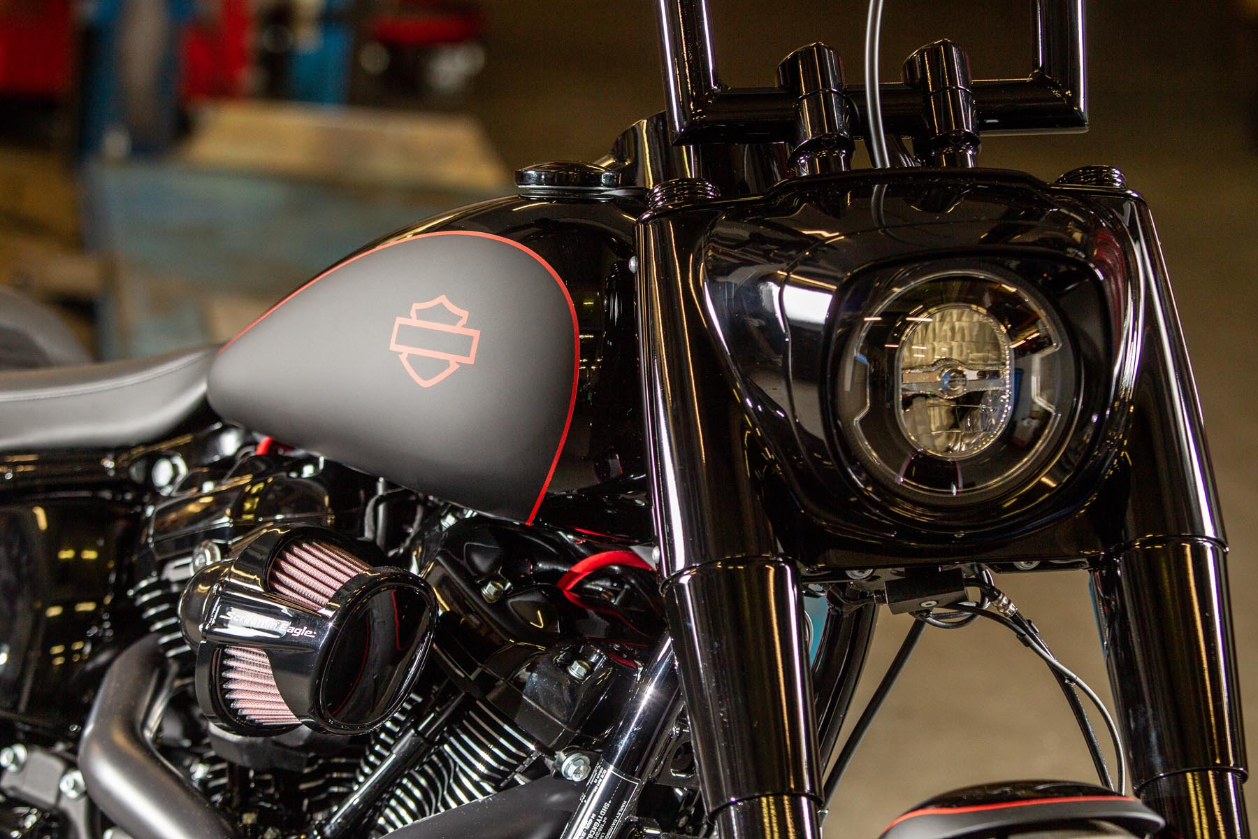De Amersfoortse H-D dealer Motor Saloon is van de partij met hun ‘Fat & Black’. De custom is gebouwd op basis van een Harley-Davidson Fat Boy Special. Motor Saloon verwacht hoge ogen te gooien. Eigenaar Marco van Velzen vertelt: ‘We hadden al snel de naam ‘Fat & Black’ in ons hoofd en dat is precies wat we gebouwd hebben.’ Nou is de Fat Boy Special van zichzelf al geen bescheiden motorfiets, maar Van Velzen en zijn team bestaande uit Koen Wijgergangs en Mark van der Laar hebben er nog een paar flinke scheppen bovenop gedaan. Zo zijn zowel voor als achter de spatborden flink gechopt, kreeg de machine een ‘fat-mini-apehanger’ stuur en een custom Bassani 2-in-1 uitlaat. Voor wat extra f*ck you kreeg hij een Heavy Breather luchtfilter en werd er aan de achterkant luchtvering geïnstalleerd, waardoor de motorfiets bij stilstand extreem laag op het achterwiel zakt. Vervolgens werd alles (‘echt, alles!’) diep, donker zwart gemaakt. Het resultaat: een indrukwekkende zwarte bruut, die zijn naam Fat & Black dubbel en dwars eer aan doet. Marco van Velzen: ‘We zijn heel trots op het resultaat en hebben veel vertrouwen in een succesvolle Battle. Laat de concurrentie maar komen!’