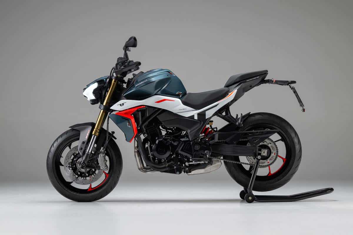 De Tornado Naked Twin 550 belichaamt pure agressie en sportieve stijl. Ontworpen door Benelli’s designcentrum in Pesaro, combineert hij gespierde lijnen met dynamische elegantie. De 554 cc parallelle twin met 56 pk en 54 Nm is levendig afgesteld voor directe respons. Dankzij het stalen buizenframe en de verstelbare vering voelt de motor wendbaar en precies aan. De uitstraling is onmiskenbaar Benelli: krachtig, compact, en klaar om op elk moment uit te breken in actie. Bovendien komt er een A2-versie – ideaal voor wie zijn eerste échte naked zoekt.