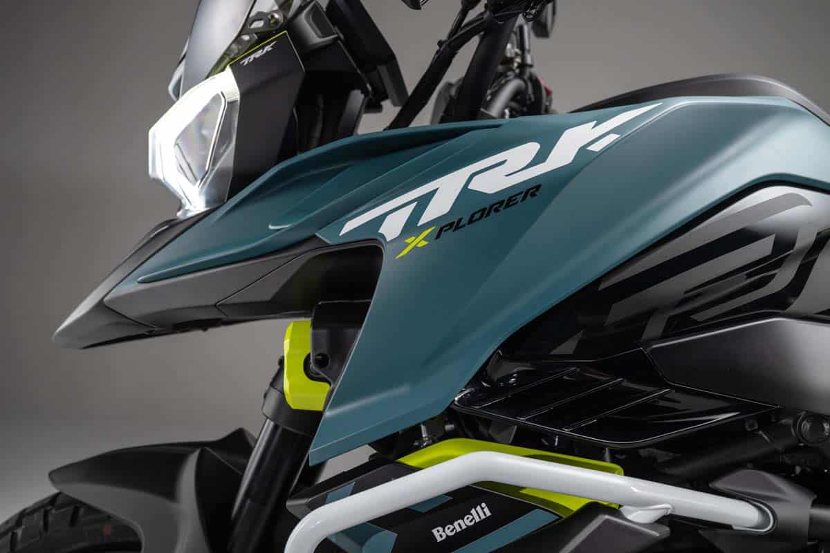 Voor wie het avontuur voorbij de horizon zoekt, introduceert Benelli de TRK 902 Xplorer. Deze robuuste reisgezel is gebouwd voor onverharde paden, met spaakwielen (19” voor, 17” achter), Pirelli Scorpion™ Rally STR-banden en een indrukwekkende bodemvrijheid van 215 mm. De krachtige 904 cc-twin levert hetzelfde 95 pk en 90 Nm als zijn Stradale-broer. Het model is uitgerust met cruise control, quickshifter, verwarmde handvatten en zadel, plus slimme bescherming in de vorm van valbeugels, aluminium skidplate en een middenbok. Kortom: alles wat nodig is om grenzen te verleggen – letterlijk en figuurlijk.