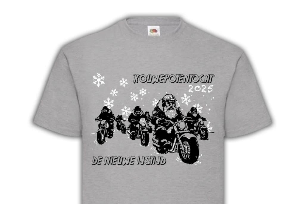 Zaterdag 25 oktober 2025 is het weer tijd voor de KouwePotenTocht! Het belooft een geweldige rit te worden met goede horecalocaties. De echte liefhebber bestelt meteen een gelimiteerd event-T-shirt als aandenken. Ook dit jaar is het weer een mooi design geworden.
