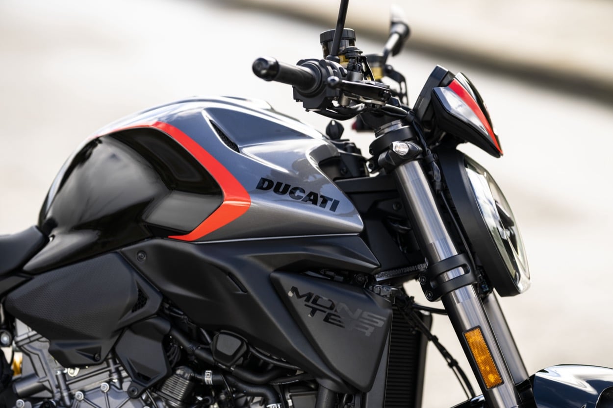 Deze Sport-uitvoering is ook beschikbaar als Plus-variant, uitgerust met een klein windscherm en een passagierscover. Onder het uiterlijk blijft de Monster trouw aan zijn kern: een koppelrijke V2-motor in een lichtgewicht aluminium monocoque frame. Met een gewichtsbesparing van vier kilo ten opzichte van de vorige generatie is de Monster wendbaar, overzichtelijk en ideaal voor zowel beginners als ervaren rijders.