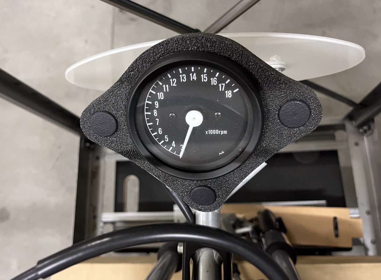 Het aangeboden exemplaar verkeert volledig in originele staat, inclusief de Bridgestone-banden waarmee de motor destijds uit de fabriek rolde. Onder het compacte kuipwerk schuilt een luchtgekoelde viertakt met ongeveer 7 pk, gekoppeld aan een zesversnellingsbak. Opvallend detail: de CB50R heeft geen startknop of kickstarter. Starten gebeurt via een duwtje, al is dat met een gewicht van rond de 70 kilo geen straf. Een kilometerteller ontbreekt eveneens, zoals gebruikelijk bij dit pure circuitapparaat.