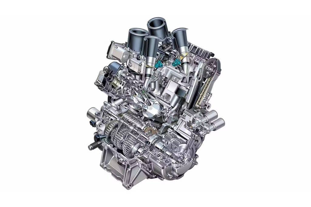 De nieuwe gepatenteerde motor toont een opvallend compacte bouw vergeleken met zijn VFR1200F-voorganger, die bekend stond om zijn robuuste, bijna massieve constructie. Dit compacte ontwerp wordt mogelijk gemaakt door een geoptimaliseerd smeersysteem dat cruciale componenten zoals de dynamo, startmotor, waterpomp en koppeling efficiënter bedient. De aanwezigheid van een balansas, een component die juist ontbrak in de ‘big-bang’ VFR1200F, duidt sterk op een terugkeer naar een regelmatige ontstekingsvolgorde.