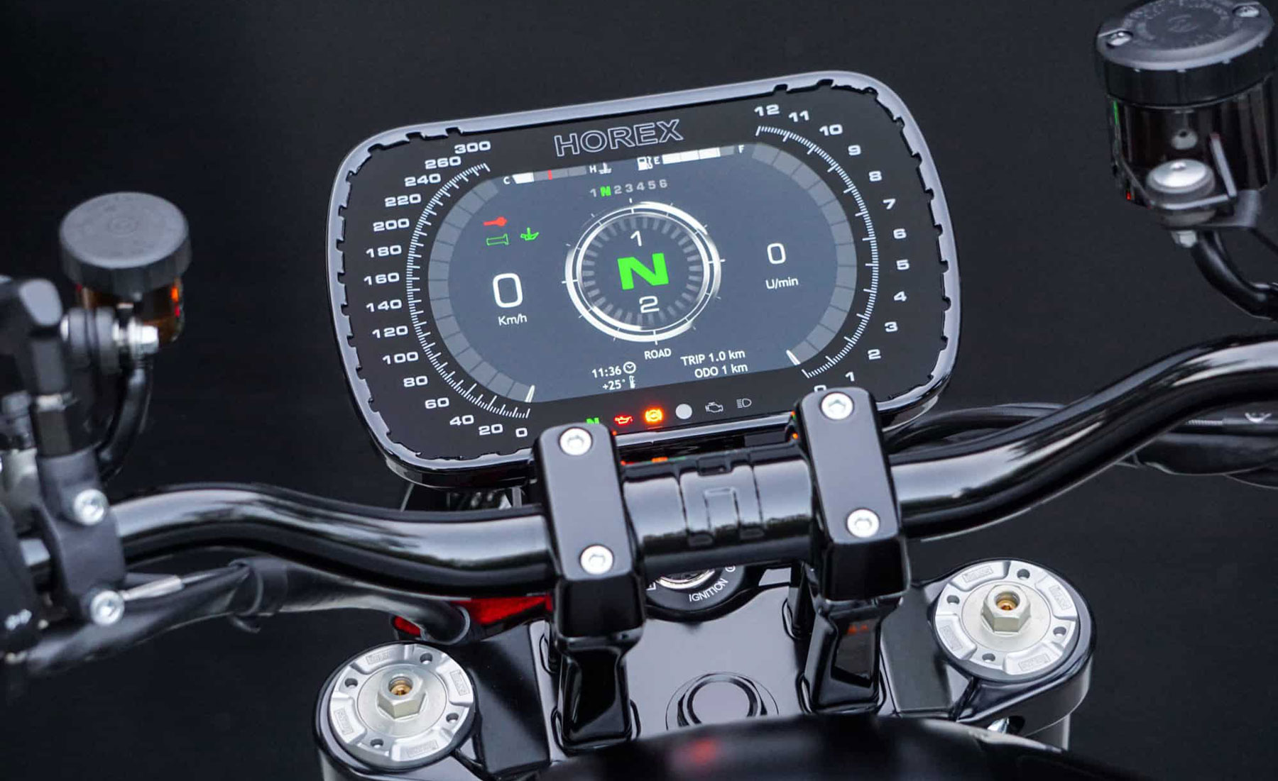 Het dashboard wordt gedonimeerd door een 7 inch TFT display dat je kunt koppelen aan je smartphone en GPS. De VR6 Raw kun je naar wens laten afmonteren met Kineo velgen, een zwart remvloeistofreservoir en titanium bouten. De Horex VR6 Raw wordt geleverd in de kleur matzwart voor de rauwe prijs van €35.500,-. Door komen Nederlandse belastingen nog bij…
