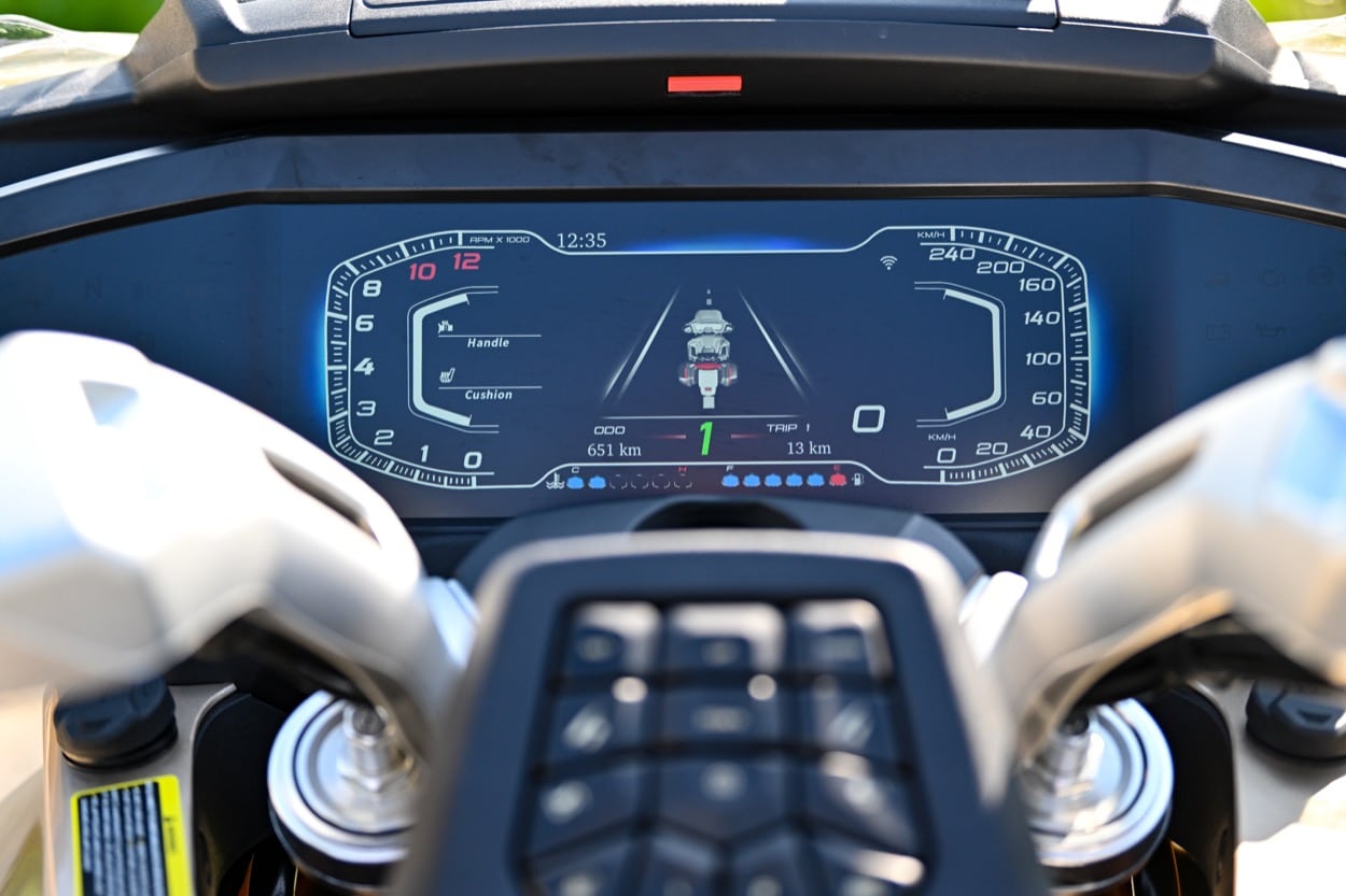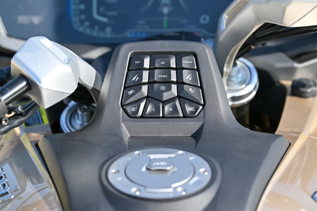 De Mash GT750 is standaard rijk uitgerust. Het 12,3” TFT-dashboard biedt smartphoneconnectiviteit, navigatie via Carbit Ride en bediening voor verwarmde handvatten en zadel (vijf standen). Keyless start, voor- en achtercamera’s met overdracht naar je smartphone, bandenspanningscontrole (TPMS) en een elektrisch bediende tankdop maken het plaatje compleet.