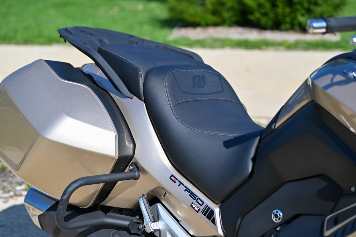 Met een brandstoftank van 24 liter en een gemiddeld verbruik van 4,6 l/100 km is de GT750 ideaal voor lange ritten, zowel solo als met een passagier.