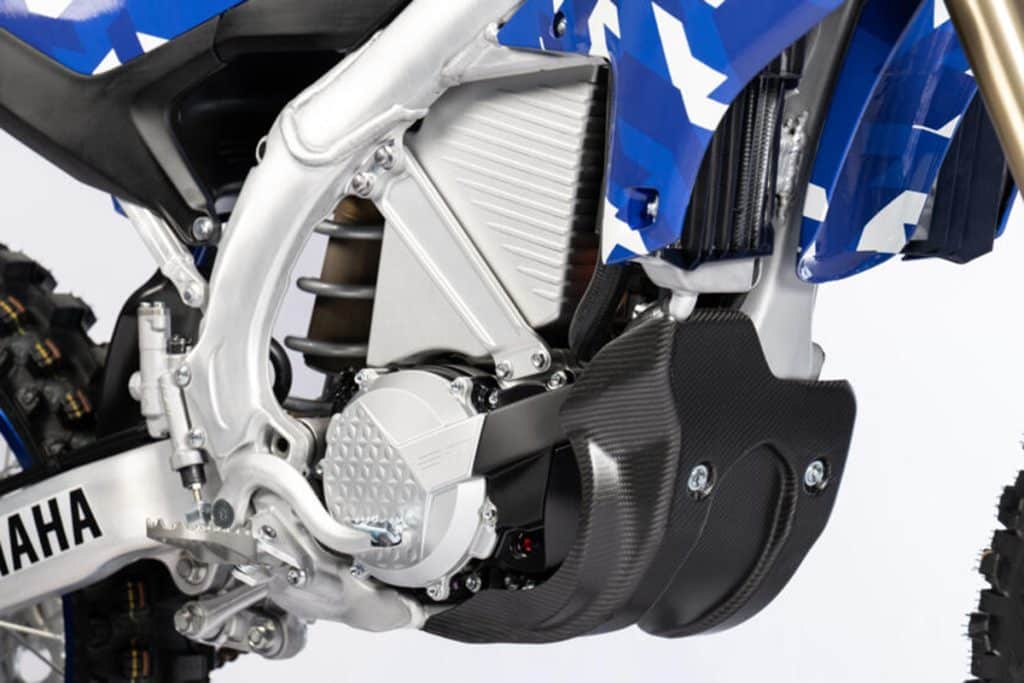 De motor bevat hetzelfde topchassis als de aankomende YZ450F (2026), voorzien van volledig instelbare en snelheidssensitieve KYB-vering. Dat zorgt voor die kenmerkende Yamaha-balans tussen controle, stabiliteit en wendbaarheid. Het compacte ontwerp, vlakke zadel en geoptimaliseerde gewichtsverdeling versterken het gevoel van vrijheid op de motor.