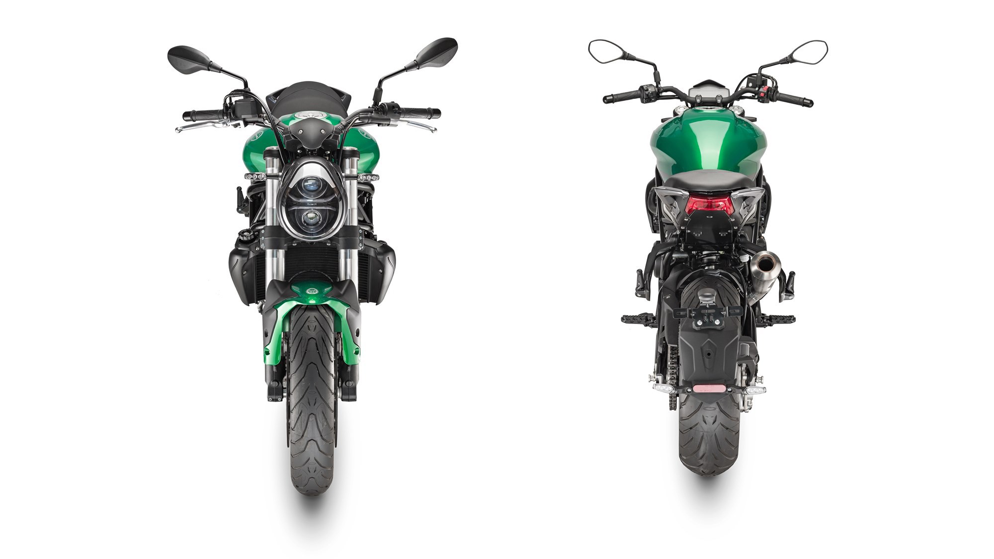 Wat weten we van de Benelli 752S? Nou niet zoveel. Slechts wat we afgelopen jaar aan specs wisten te vergaren. Dat de tweecilinder goed is voor zo’n 82 pk @ 9.000 tpm en een koppel heeft van 67Nm @ 6.500 tpm. Dat het blok een inhoud heeft van 754cc. Dat de remmen mogelijk worden betrokken van de firma Brembo en dat de vering is uitbesteed aan Marzocchi en/of KYB.