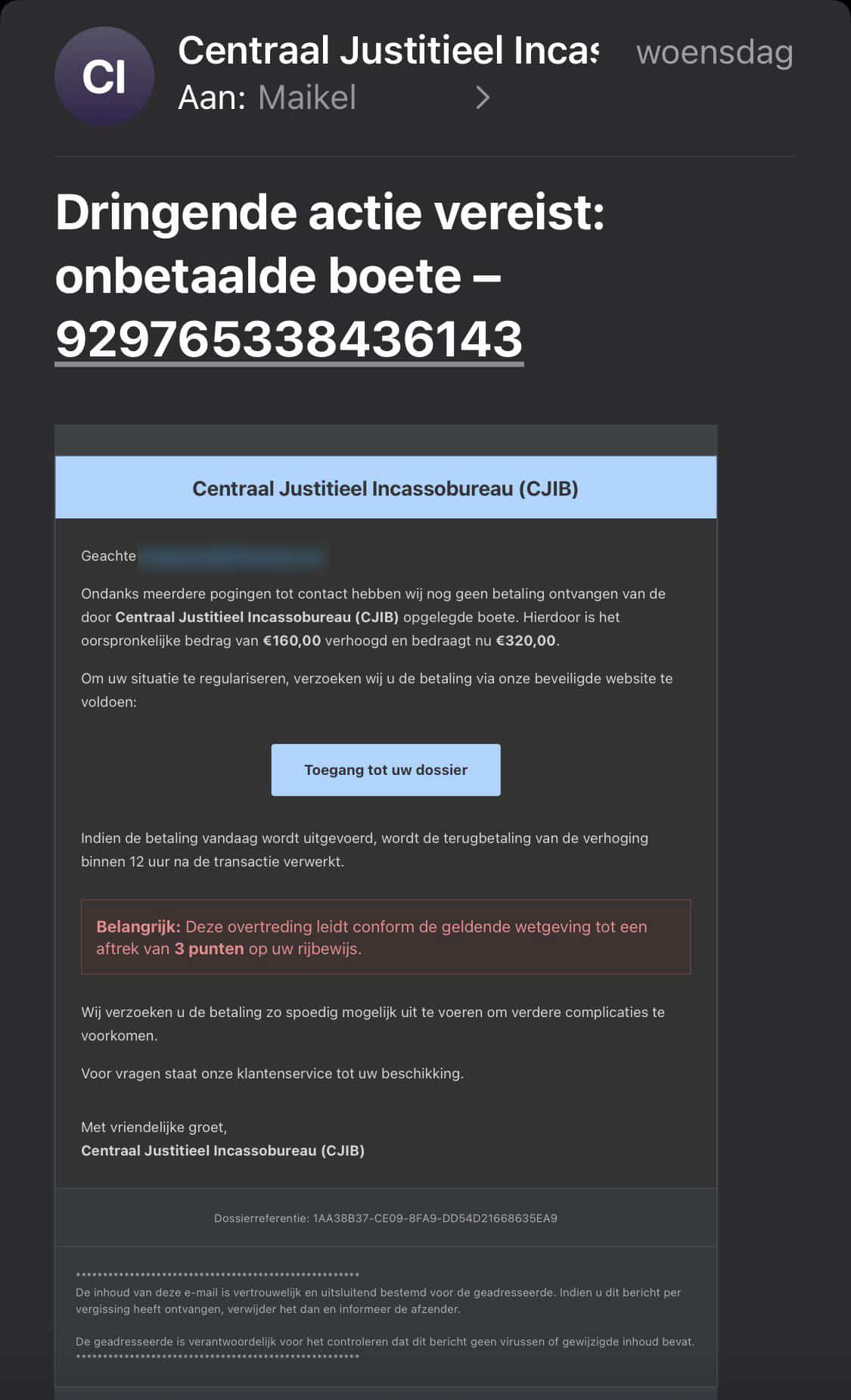 UPDATE Laatste aanmaning? Pas op voor valse CJIB-mails van ‘Geerlings & Hofstede’