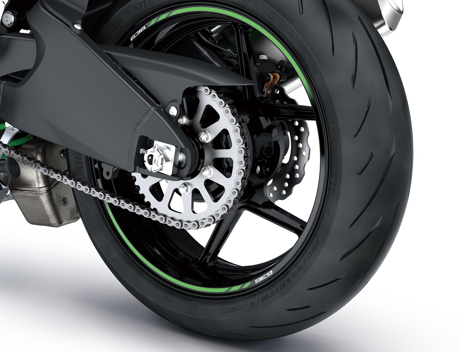 De kracht van de Ninja ZX-6R is toch wel het motorblok. Het vergroten van de cilinderinhoud met 36cc heeft in de 600 klasse heel veel invloed op het vermogen en met name het koppel. Hierdoor is de ZX-6R naast sportief ook goed en comfortabel te gebruiken op de straat.