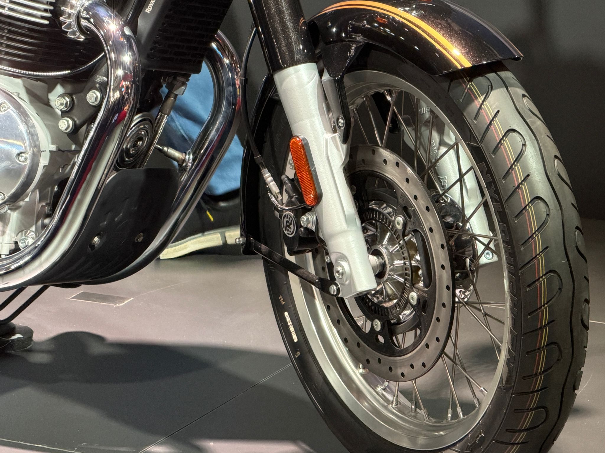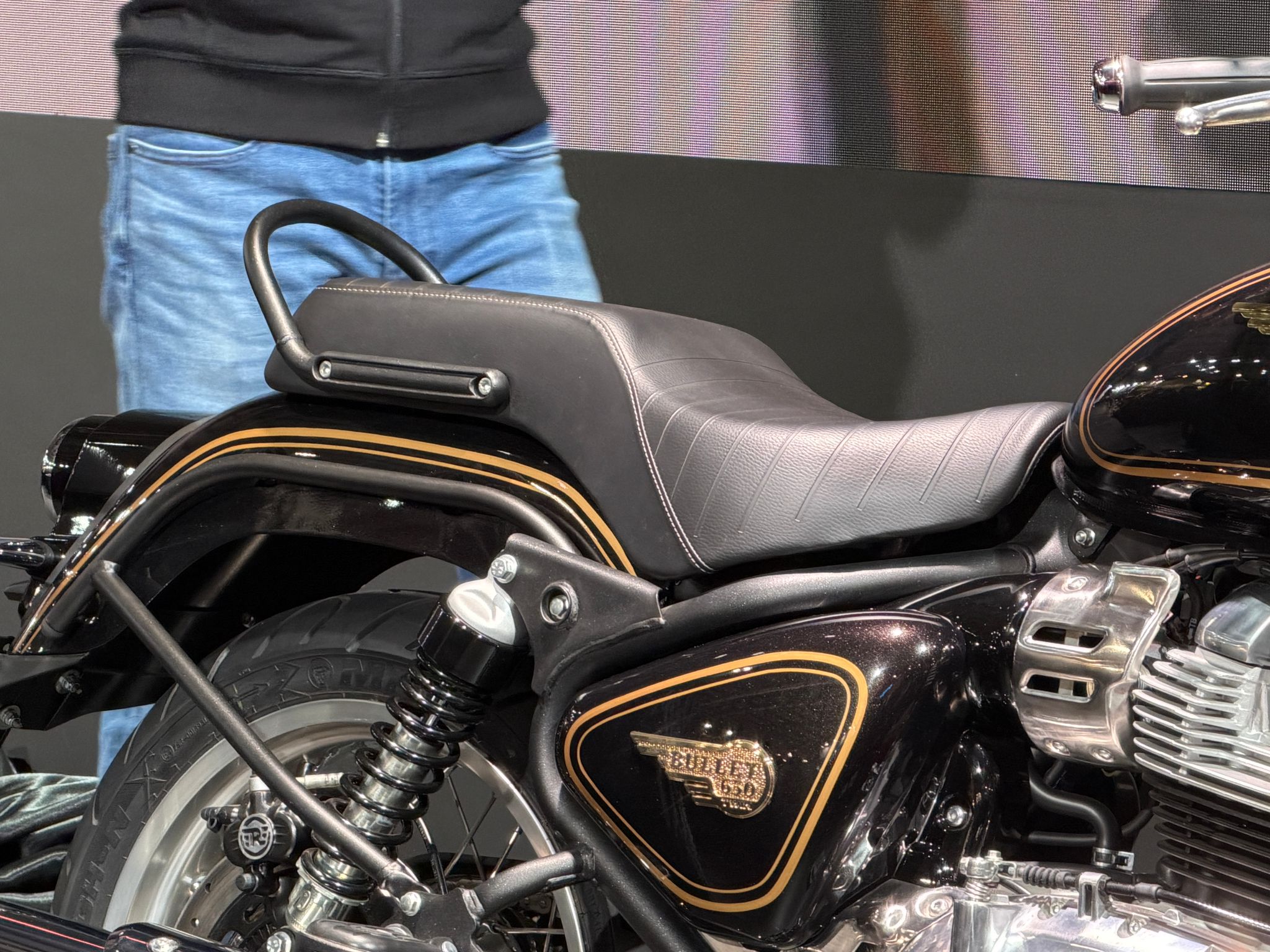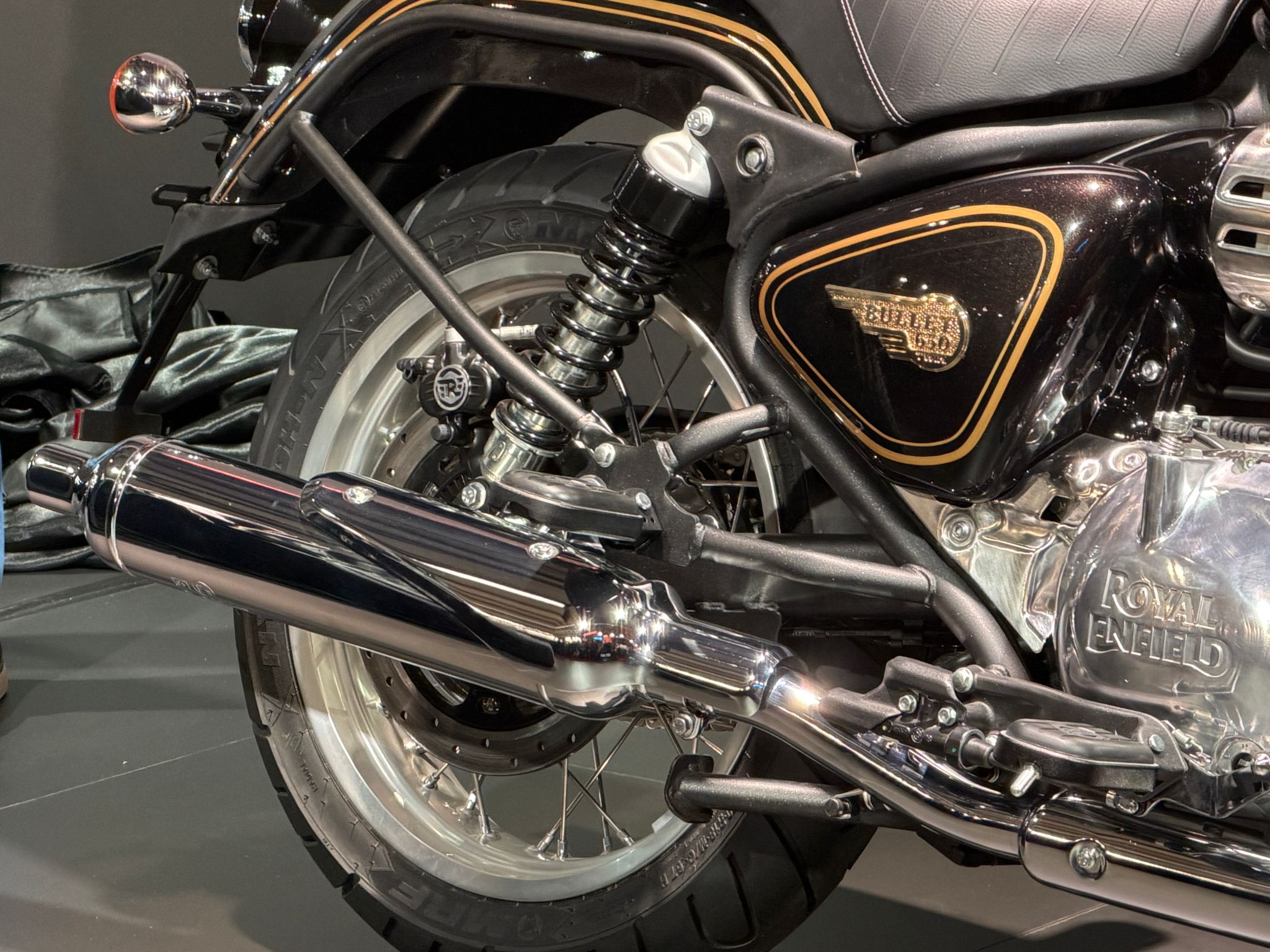 De Bullet 650 uit 2025 is de krachtigste ooit. De twinmotor biedt een solide, soepele rijervaring die vertrouwen uitstraalt. Het robuuste stalen buizenframe, de met de hand gelakte pinstripes, de klassieke tijgerlichten, het vintage zadel en de rechte zitpositie maken duidelijk: dit is de ware erfgenaam van een icoon. Het is geen motor die zich anders voordoet dan hij is; het is pure, ongekunstelde old-school perfectie.