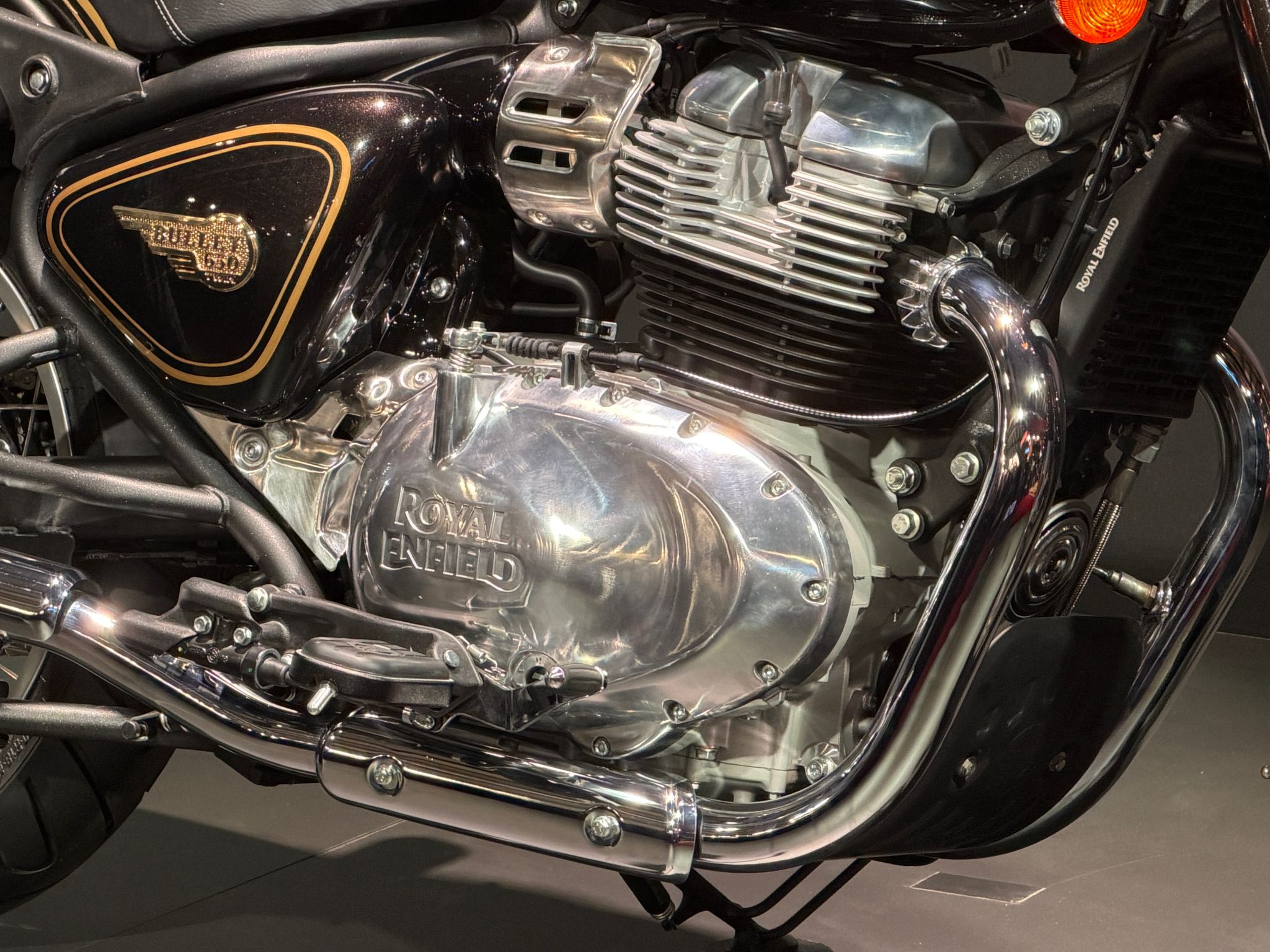 Zijn tweecilindermotor levert moeiteloze kracht en vloeiende acceleratie – ideaal voor zowel rustige tochten als energieke ritten. De zesversnellingsbak en lichte slipkoppeling versterken het comfort. Elk element, van silhouet tot geluid, ademt de ziel van de klassieke Bullet en maakt deze machine tot een meesterwerk van tijdloze eenvoud.