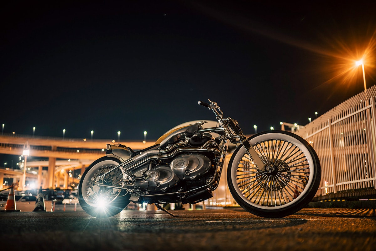 Custom Works Zon, de Japanse meesterbouwer uit Shiga Prefecture, kreeg van Royal Enfield carte blanche om iets krankzinnigs te bouwen. Het resultaat is een constructie waarin twee parallel-twins via een zichtbare ketting samenwerken tot één aandrijflijn, aangestuurd door één versnellingsbak. Theoretisch goed voor zo’n 100 pk. Maar dit project is geen prototype, geen toekomstbelofte – het is een kunstwerk met een knipoog naar de waanzin. Old-school looks, brute techniek, en een vrijheidsgedreven boodschap. Royal Enfield, ooit de hoeder van klassiek conservatisme, laat hiermee zien dat het ook durft te shockeren binnen een scene vol Amerikaanse grootmachten.