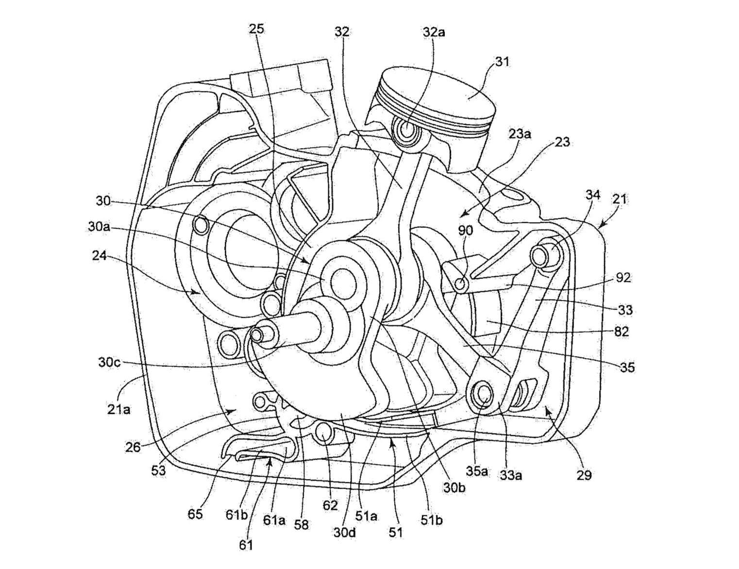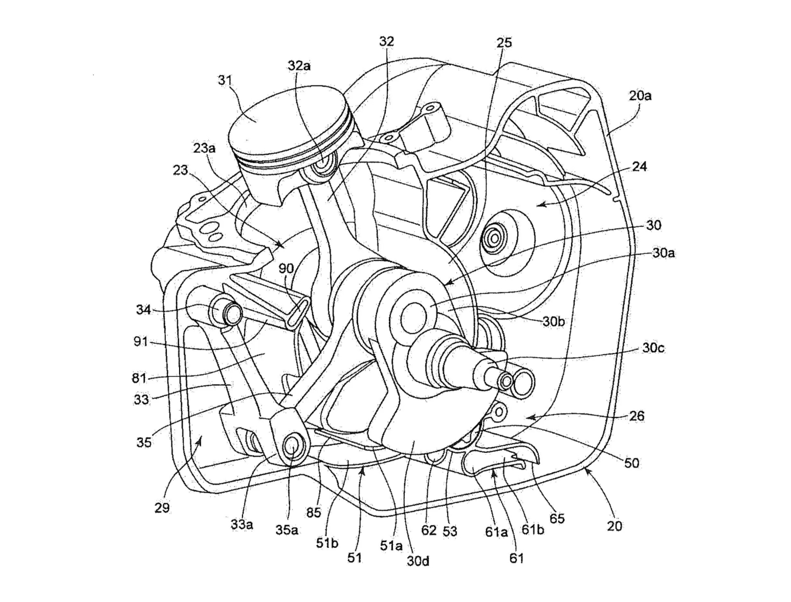 Het Suzuki Supermono octrooi concentreert zich op de smering van het blok. De tekeningen ingediend bij de octrooiaanvraag hebben betrekking op een eencilinder blok met een dummy cilinder voor een balansas. Dezelfde benadering werd door Ducati in 1993 gebruikt, toen de Italiaanse firma de beroemde Supermono bouwde. Zo’n dummycilinder maakt het mogelijk om de eencilinderopstelling in primaire balans te brengen. Wat betekent dat deze meer toeren kan maken. En dus meer vermogen kan leveren.