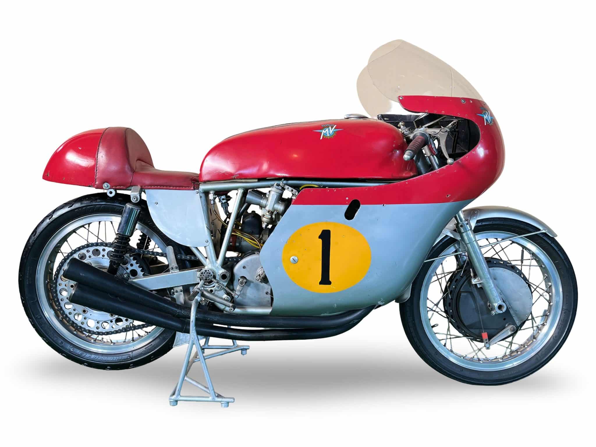 Met maar liefst 37 wereldtitels tussen 1952 en 1974 staat MV Agusta symbool voor pure racetechniek en dominantie. De motor werd in 1986 door John Surtees rechtstreeks bij MV Agusta gekocht en later in 2005 verkocht aan de huidige eigenaar. Volgens Surtees is dit de enige originele motor die de fabriek compleet heeft behouden na de overstap naar de driecilinders in 1966.
