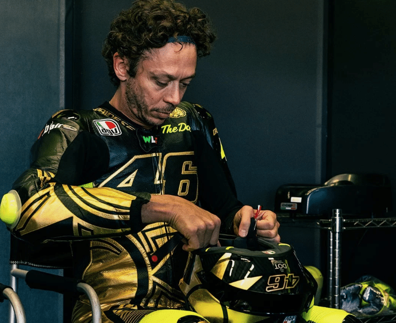 Concreet gaat het over een Demone GP D-air® 3x-pak en de Pista GP RR-helm die beide zijn uitgevoerd in de speciale Soleluna Vale46 Anniversario-livrei. Die set werd begin dit jaar ontworpen ter ere van Rossi’s 46ste verjaardag. Dit exemplaar – nummer 1 van 46 – is extra waardevol omdat Valentino er daadwerkelijk op Mugello meer heeft gereden. Een opvallend detail maakt het nog specialer: Rossi’s iconische schildpadlogo staat op de schouder in een exclusieve gouden versie, een ontwerp dat nooit eerder is gebruikt. Voor verzamelaars en Rossi-fans is dit zonder meer een eenmalige kans om een stukje Rossi-legende te bemachtigen.