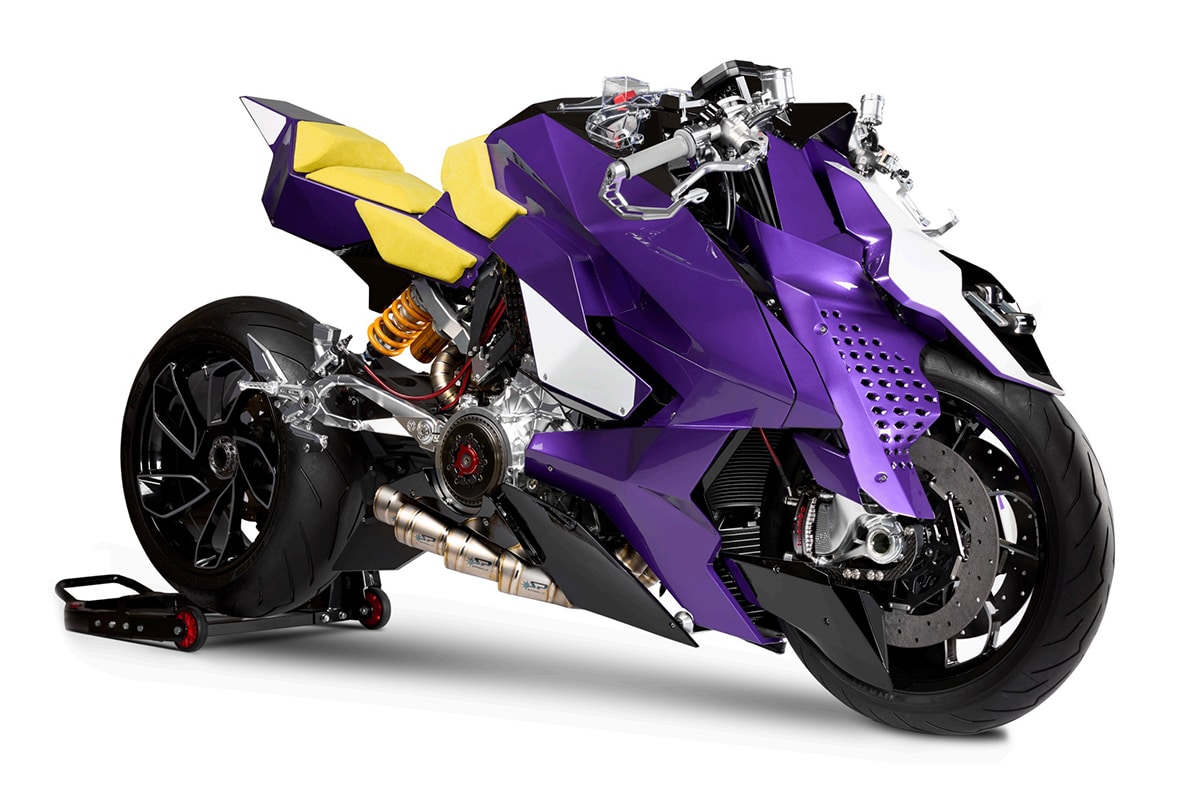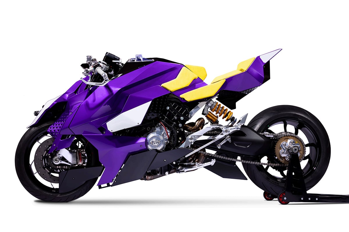 De agressieve, voorovergebogen houding is geen toeval. De achterkant komt omhoog, de neus duikt omlaag – een postuur dat lijkt alsof de Anima elk moment zijn prooi bespringt. De dicht bepantserde voorvorken en het lage silhouet maken het plaatje af. Dit is geen facelift; dit is een complete hercodering van de zwaartekracht zelf. Elke lijn jaagt energie door het design, alsof een animefiguur uit een dystopisch game-universum de weg op stormt.