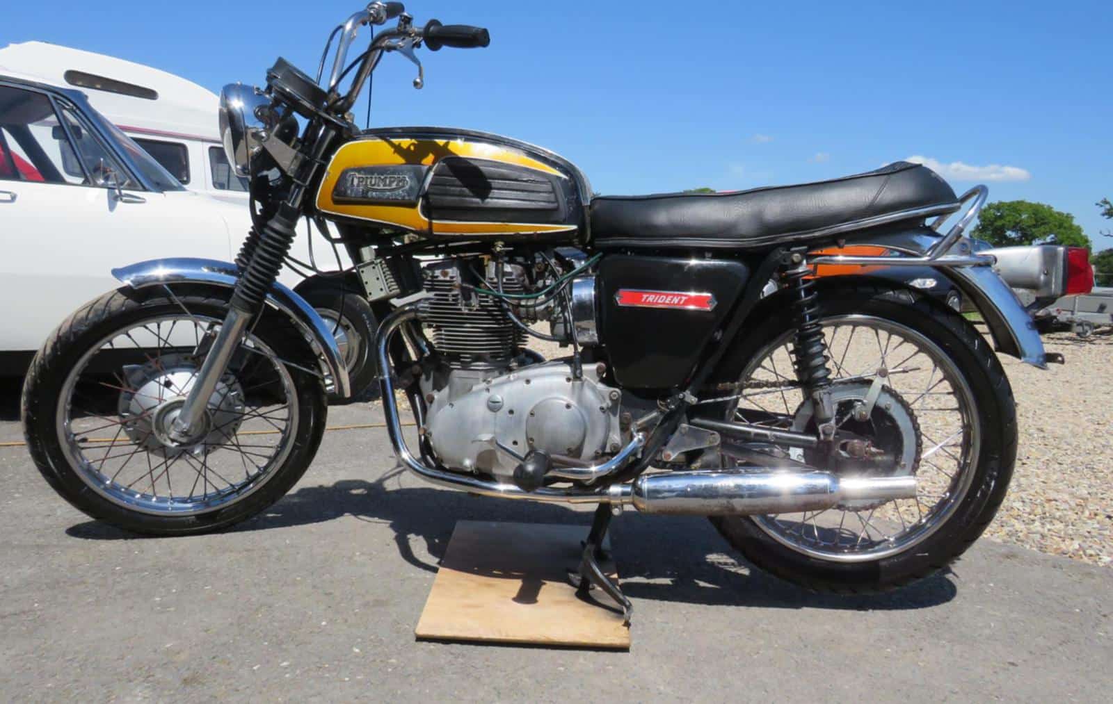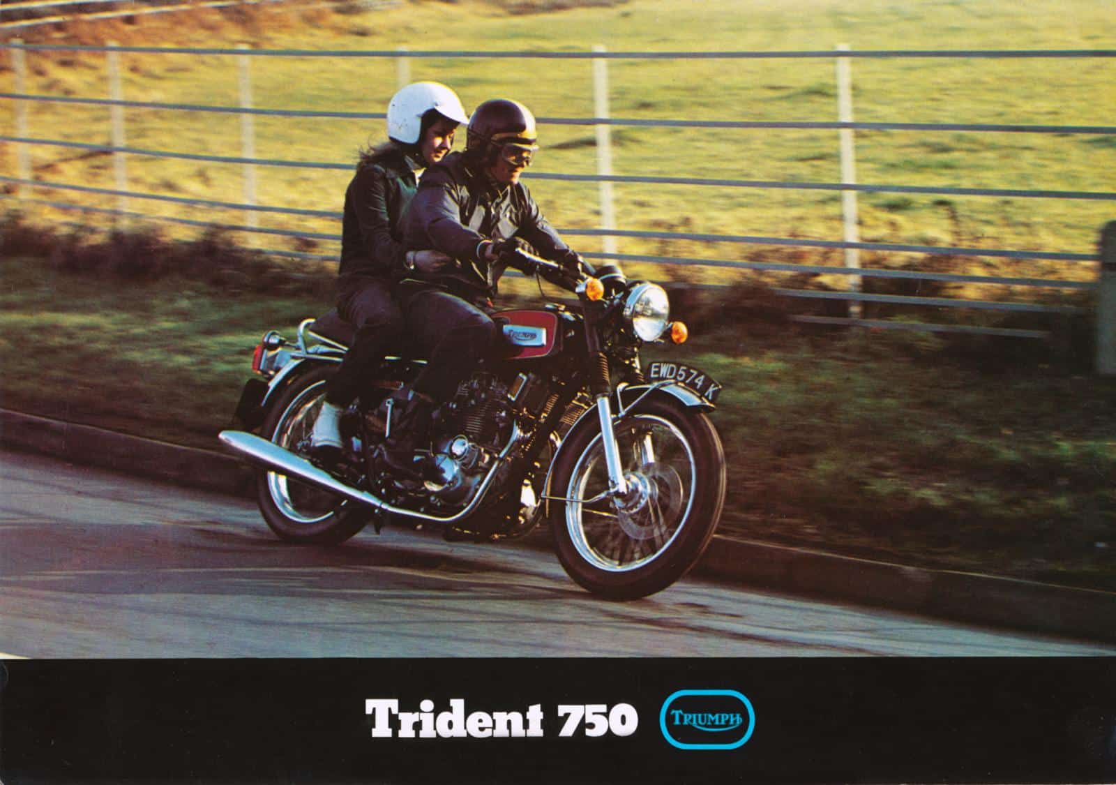 De Trident en de Rocket verschilden licht van elkaar. Grootste verschil was dat de cilinders van de Rocket 15 graden naar voren helden en de Trident de cilinders verticaal op het carter had staan. Toen de Trident uitkwam, werd hij door de Engelse motorpers bestempeld als een ‘anderhalve Triumph 500’, wat gezien zijn technische opbouw en relatie met de bestaande paralleltwin-modellen ook heel logisch was. De drie cilinders hadden een boring x slag van 67 mm x 70 mm, goed voor een cilinderinhoud van 741 cc. De twee kleppen per cilinder werden met dubbele onderliggende nokkenassen en stoterstangen bediend. Het blok leverde in zijn eerste uitvoering een maximumvermogen van 58 pk bij 7.250 tpm. Via een primaire ketting en een Borg & Beck-enkelplaatskoppeling werd dit vermogen overgebracht naar de losse vierversnellingsbak. Topsnelheid van de T150 Trident met zijn drooggewicht van 212 kg werd gemeten op 208 km/u. Daarmee was de Trident de snelste productiemotor ter wereld op dat moment.