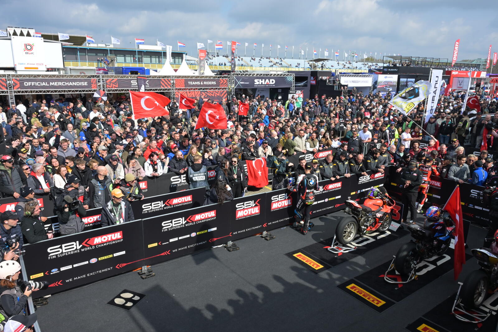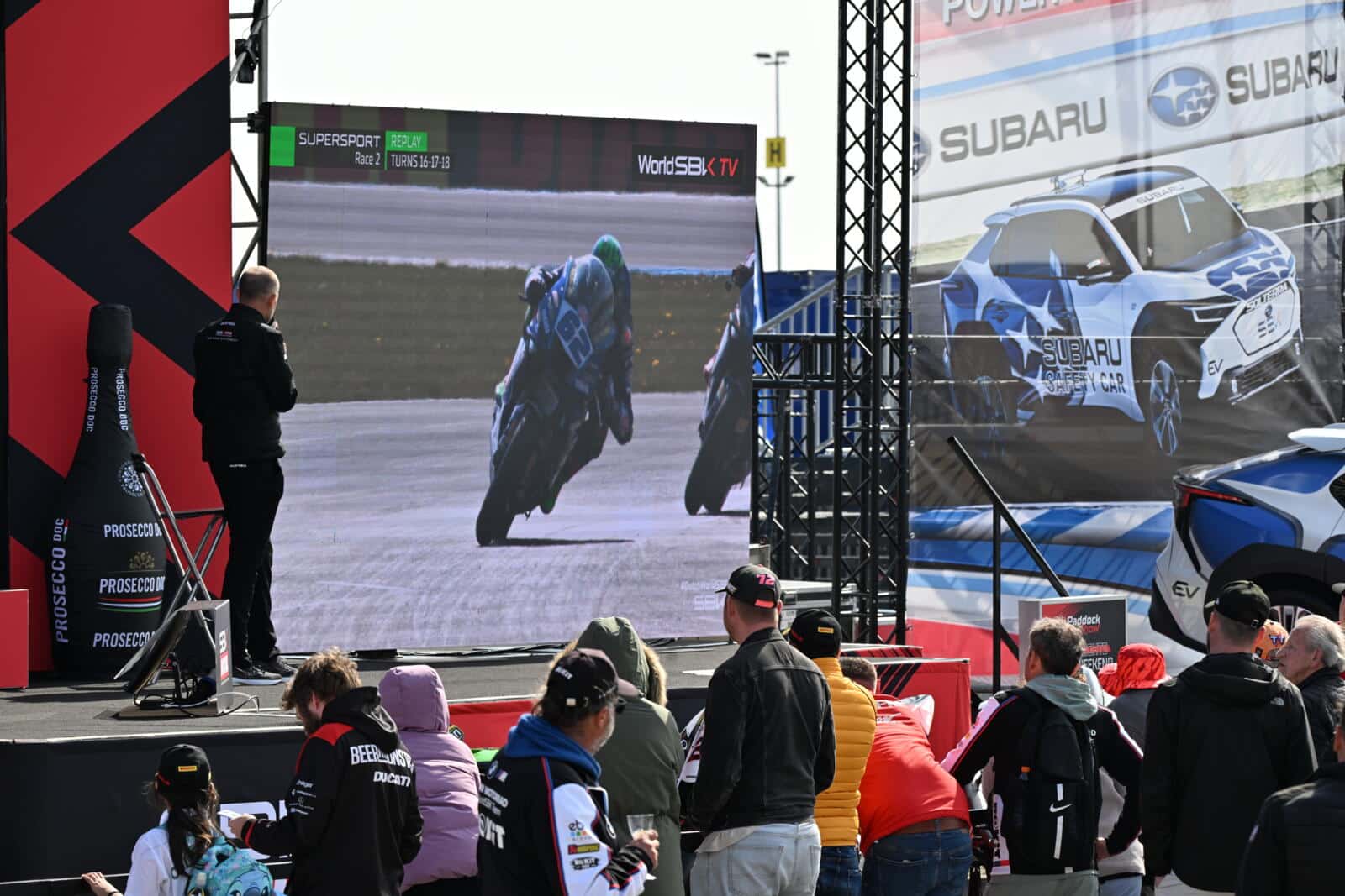 Door dat onderdeel voelen hoef je als toeschouwer niet op de tribunes en taluds te blijven, je kunt bij het WK Superbike door de tunnel onder de Hoofdtribune naar het binnenterrein gaan en je kunt dan het rennerskwartier in, waar zich tal van activiteiten afspelen. Dat kun je ook doen tijdens races, want op een groot scherm kun je in de ‘Fanzone’ elke race volgen. Met daarbij Engels commentaar. Dat scherm staat op een podium waar ook de eerste drie van elke race worden gehuldigd. De rijders komen na de race op hun motoren daarnaartoe en rijden door ‘Victory Lane’. Ook de beste drie van de Superpole-sessies komen naar het podium. Alvorens ze naar het podium komen, worden daarnaast interviews met hen afgenomen door meerdere tv-ploegen. Je kunt er met je neus bovenop staan.