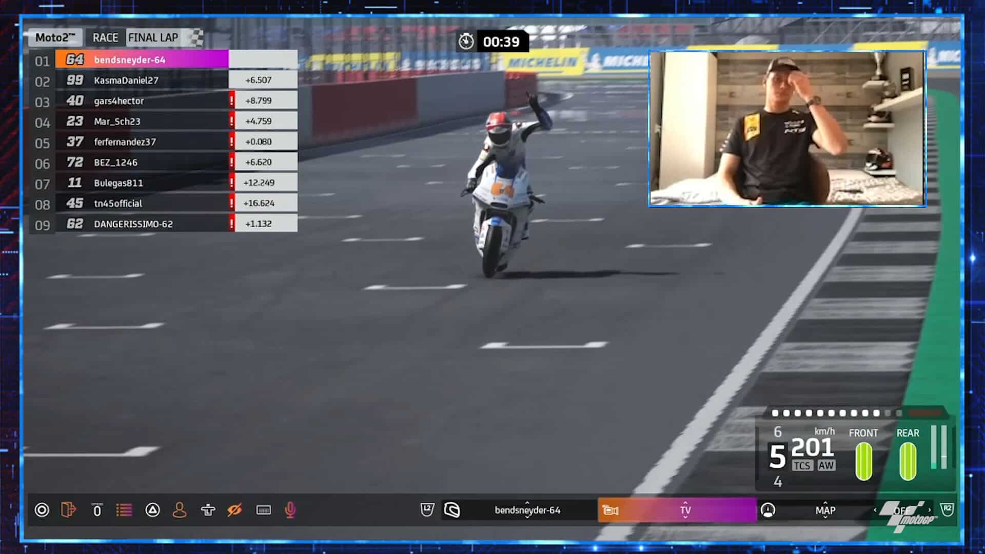 In zijn eerste virtuele GP, een paar weken geleden, eindigde Bendsneyder al op het podium. Een crash in de eerste ronde op het circuit van Jerez voorkwam toen een nog beter resultaat dan de derde plaats.