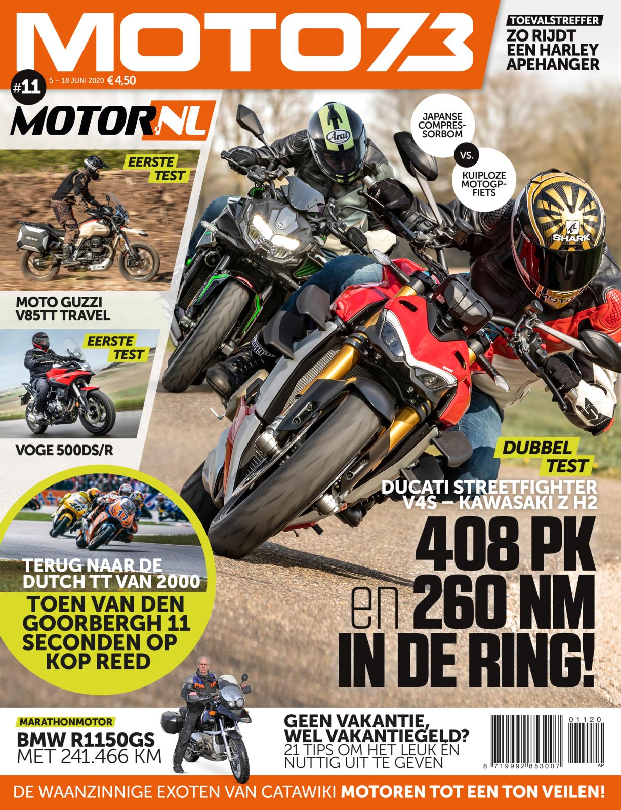 MOTO73 editie 11 ligt vanaf vandaag in de winkel en is hier online te bestellen. In deze nieuwe editie van MOTO73 o.a. een dubbeltest van de Ducati Streetfighter V4S vs. Kawasaki Z-H2. Een Japanse compressorbom vs. een kuiploze MotoGP-fiets. Hebben we een Harley Apehanger als toevalstreffer, een tourverhaal over de Duitse Oostzee, we testen de Moto Guzzi V85TT Travel en blikt Jurgen van den Goorbergh terug naar TT 2000. Dit en nog heel veel meer lees je in MOTO73 #11.
