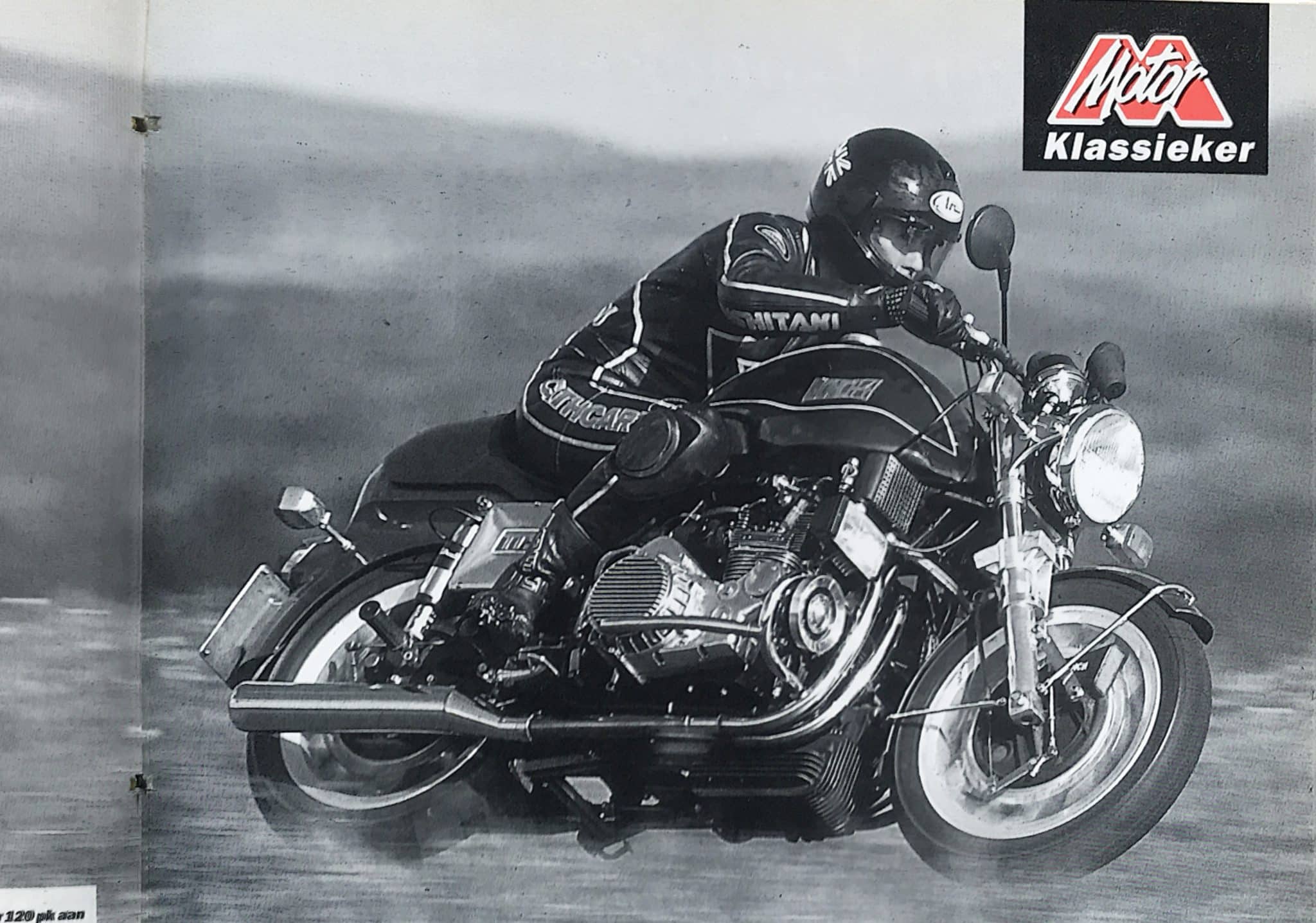 MOTOR-correspondent Alan Cathcart krijgt de gelegenheid om kennis te maken met de 1600 TTS-E. De E staat voor ‘Einsitzer’. Aan alles zie je het hoge gewicht van de motorfiets af. Die weegt 277 kg, droog welteverstaan. Het blok neemt daarvan honderd kilo voor zijn rekening. De ‘machtige’ motor levert 120 pk bij 7.500 tpm en heeft vier versnellingen. Misschien overbodig om te vertellen: de TTS-E kan zeer schakellui bereden worden.