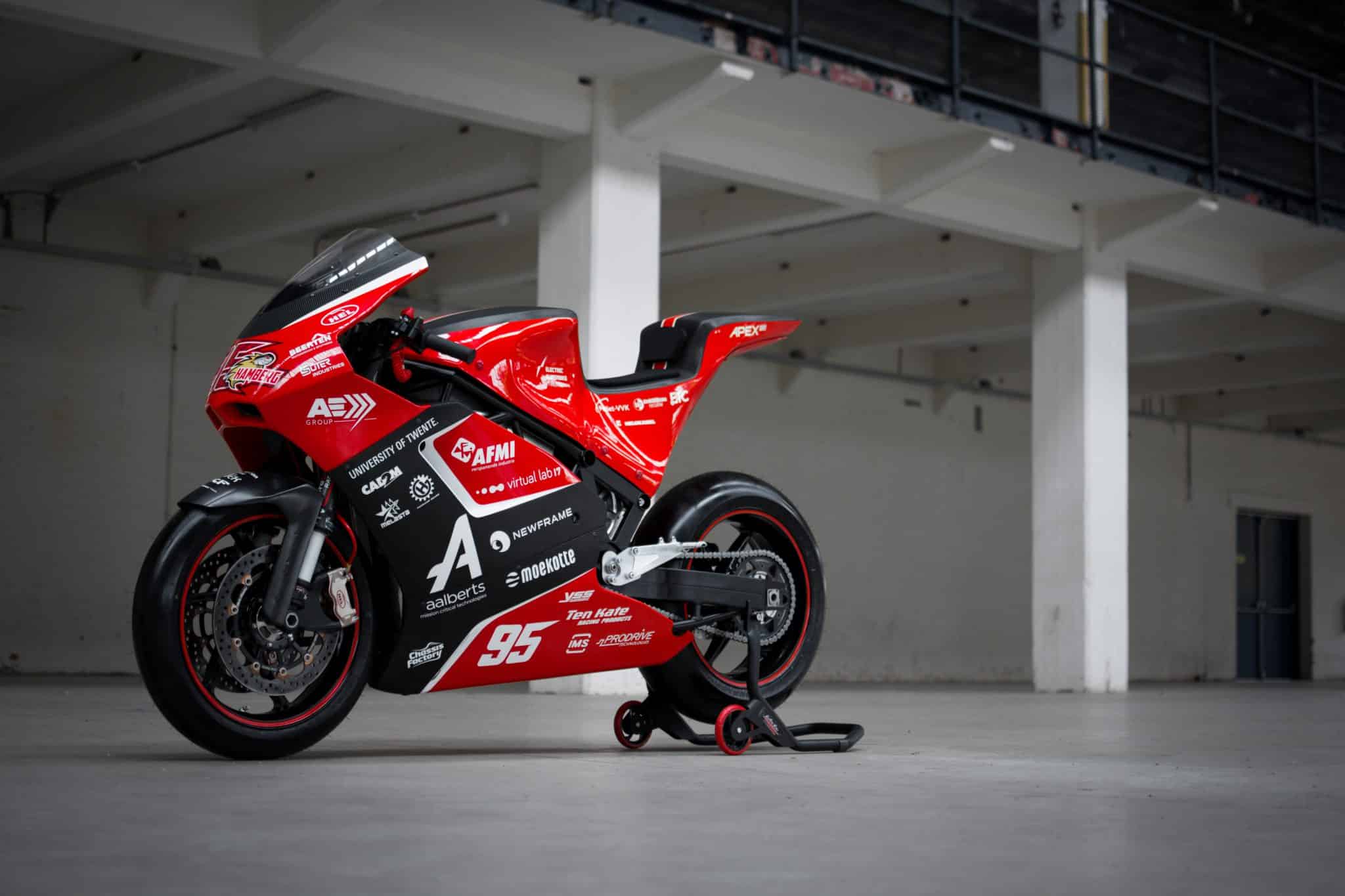 Zie hier de verschrikkelijk gave Apex-RS, alweer de derde elektrische superbike gemaakt door het studententeam Electric Superbike Twente. Wendbaarder, mooier en vooral sneller dan ooit tevoren, aldus het team en dat is helemaal bijzonder als je weet dat de motor in slechts achten maanden is ontworpen én in elkaar gezet. Zodra het weer kan, zal de Apex-RS in actie te zien zijn in meerdere races.