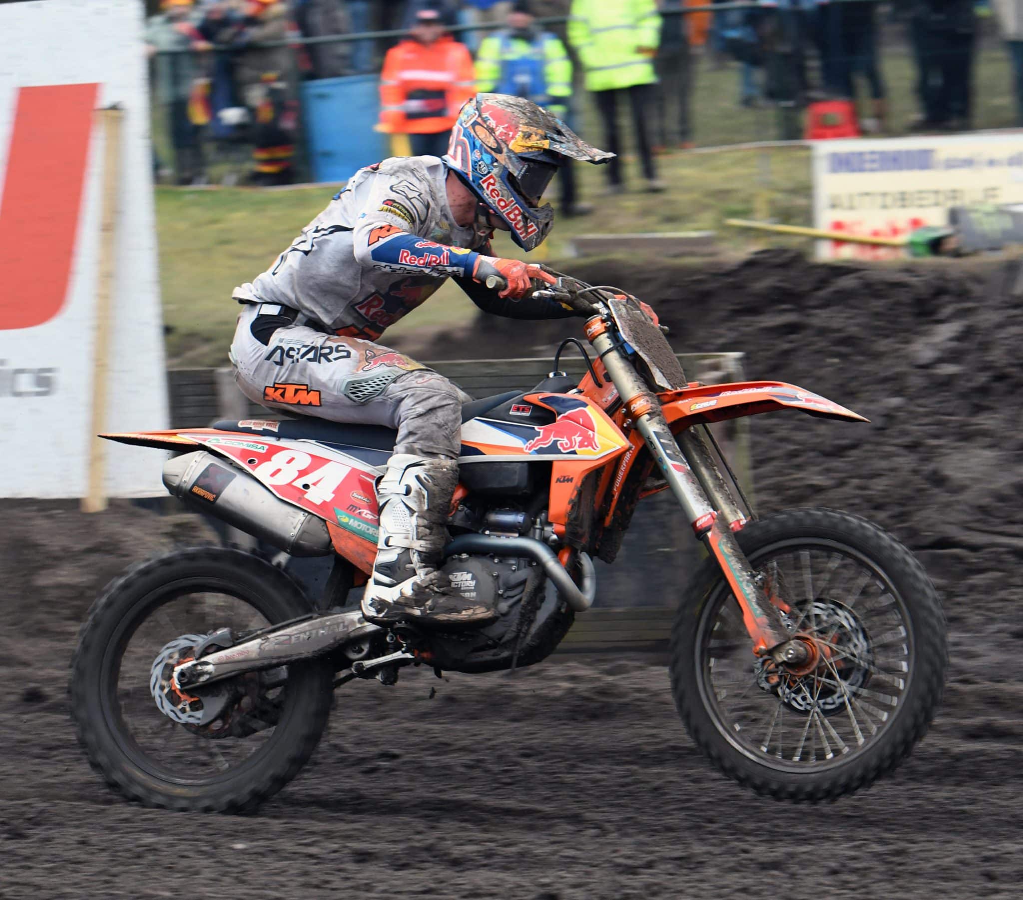 Glenn Coldenhoff (GasGas) kwam als zesde over de finish. Hij had een matige start en wist zich een plaats of tien op te werken. Hij hoopt in Valkenswaard eindelijk eens op het podium te komen. Coldenhoff: “In 2018 werd ik vierde met evenveel punten als de derde. Ik kijk uit naar de race van morgen.” Coldenhoff is een trotse GasGas-rijder: “Het is een grote erkenning voor mijn team Standing Construct dat wij het fabrieksteam van GasGas zijn geworden. De motor is in de basis een KTM.”