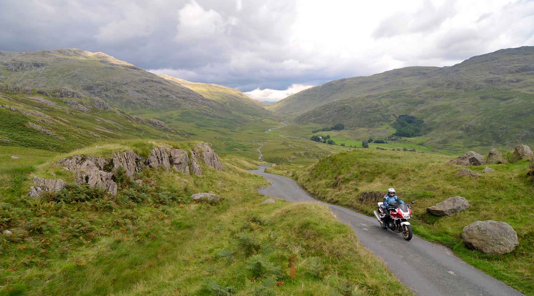 De volgende dag zitten we na het Engelse ontbijt weer vroeg op de motor. De route voert je dwars door het Lake District over de fameuze Wrynose en Hardknot Pass, met 30% stijging! Dan zakken we af naar het zuiden voor het laatste stuk van de Windermere Loop. Als de Loop erop zit, gaat het rechtstreeks door het Lake District naar het noorden.